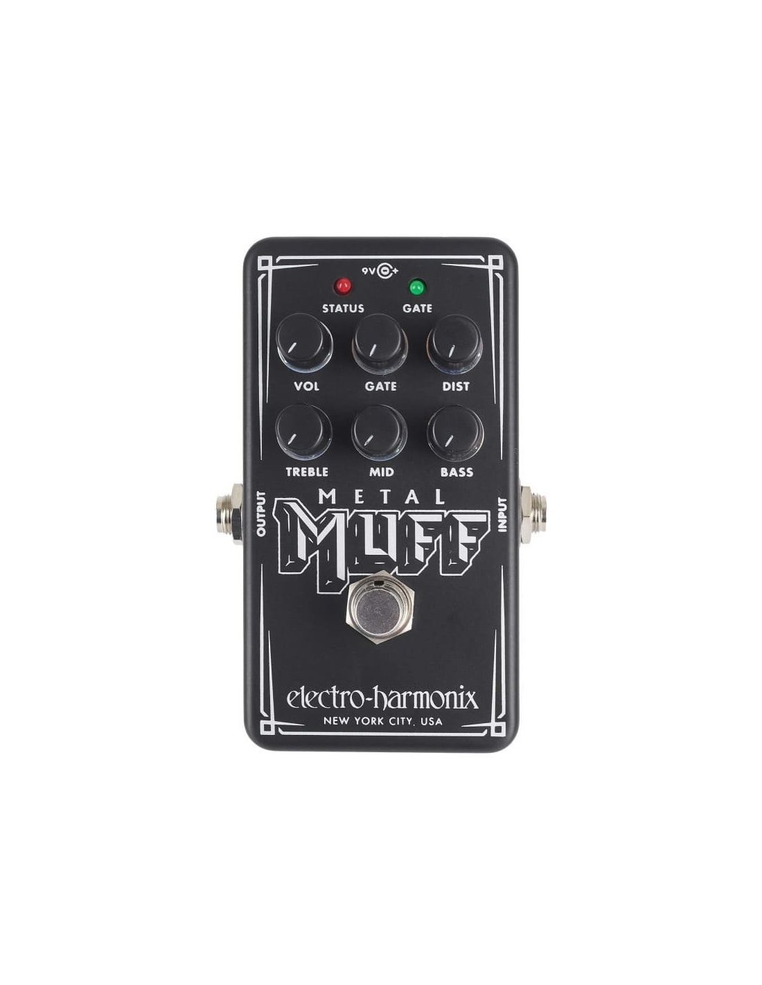 ELECTRO HARMONIX NANO METAL MUFF Verzerrpedal mit Noise Gate für Gitarre. Die technischen Merkmale umfassen Lautstärkeregler, Gate zur Eliminierung von Hintergrundgeräuschen (mit dediziertem LED), Verzerrung, 3-Band-Equalizer (Höhen, Mitten, Bässe). Wird mit 9V-Batterie geliefert.