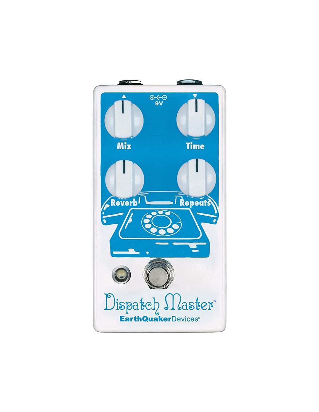 EARTHQUAKER DEVICES DISPATCH MASTER V3 ist ein Delay/Reverb-Pedal für Gitarre. Die technischen Merkmale umfassen Flexi-Schalter für einen momentanen oder kontinuierlichen Betrieb (bei gedrückter Taste), die Regler MIX, TIME, REVERB, REPEATS (Delay) zur Steuerung der Form der Effekte. Es funktioniert mit einem 9V-Netzteil, das nicht enthalten ist.