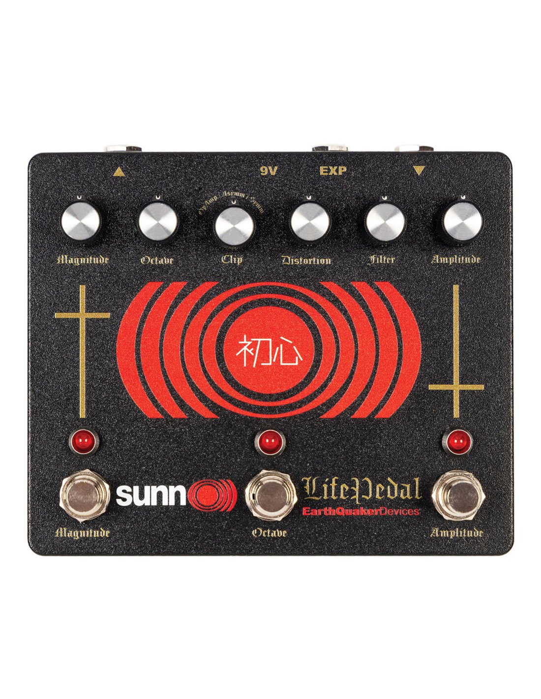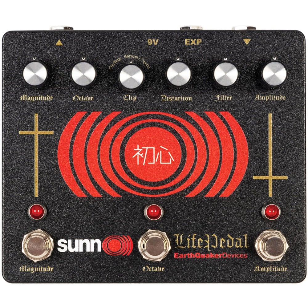 Das Life Pedal V3 ist ein Verzerrungs-, Oktav- und Booster-Pedal für Gitarre von Earthquaker Devices, entwickelt in Zusammenarbeit mit Sunn O))). Es verfügt über 3 wählbare Clipping-Modi, 3 Fußschalter mit Toggle- und Momentanfunktion zum Aktivieren oder Deaktivieren des Boosts, der Oktave und der Verzerrung, eine True Bypass-Funktion und einen Eingang für ein Expression-Pedal zur Steuerung des Oktaveneffekts.