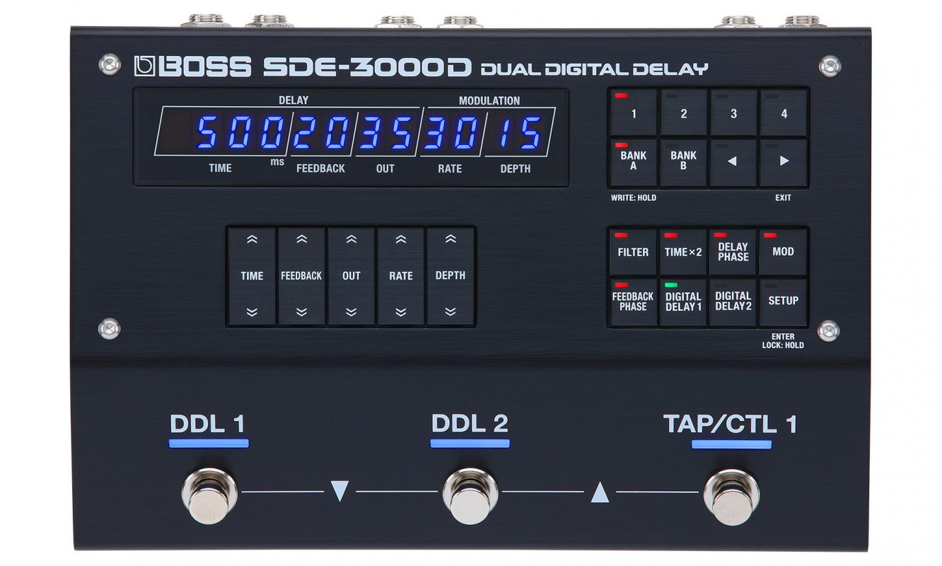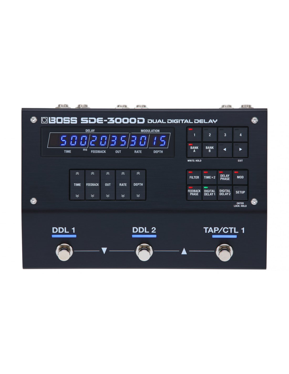 Der SDE-3000D ist ein Delay-Pedal für Gitarren von Boss, das den Klang und die Funktionen des Roland SDE-3000 aus den 80er Jahren reproduziert. Es verfügt über 2 Delays mit unabhängigen Parametern, einen Equalizer, 2 Eingänge und 2 Ausgänge für Stereo, Wet/Dry oder Dual Mono und 100 Speicherslots, um die bevorzugten Einstellungen zu speichern.