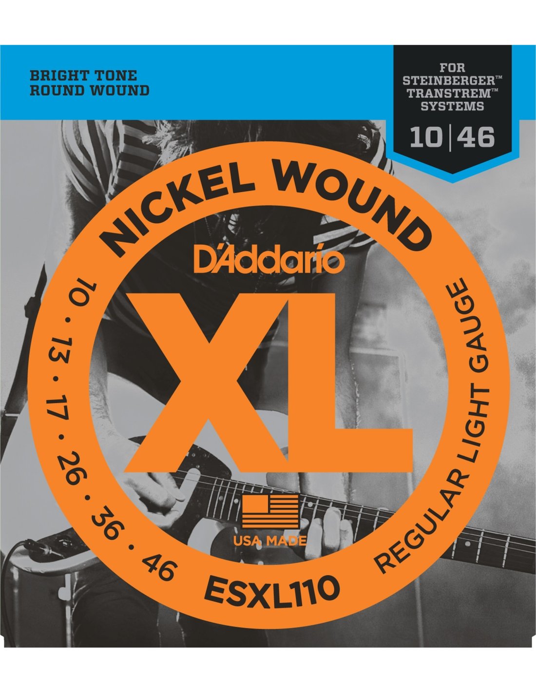 Corde per Chitarra Elettrica D'Addario ESXL110 010-046. Le D'Addario ESXL110 010-046 sono un set di corde per chitarra elettrica nickel wound con con doppio pallino e scalatura regular light .010 .013 .017 .026w .036w .046w.