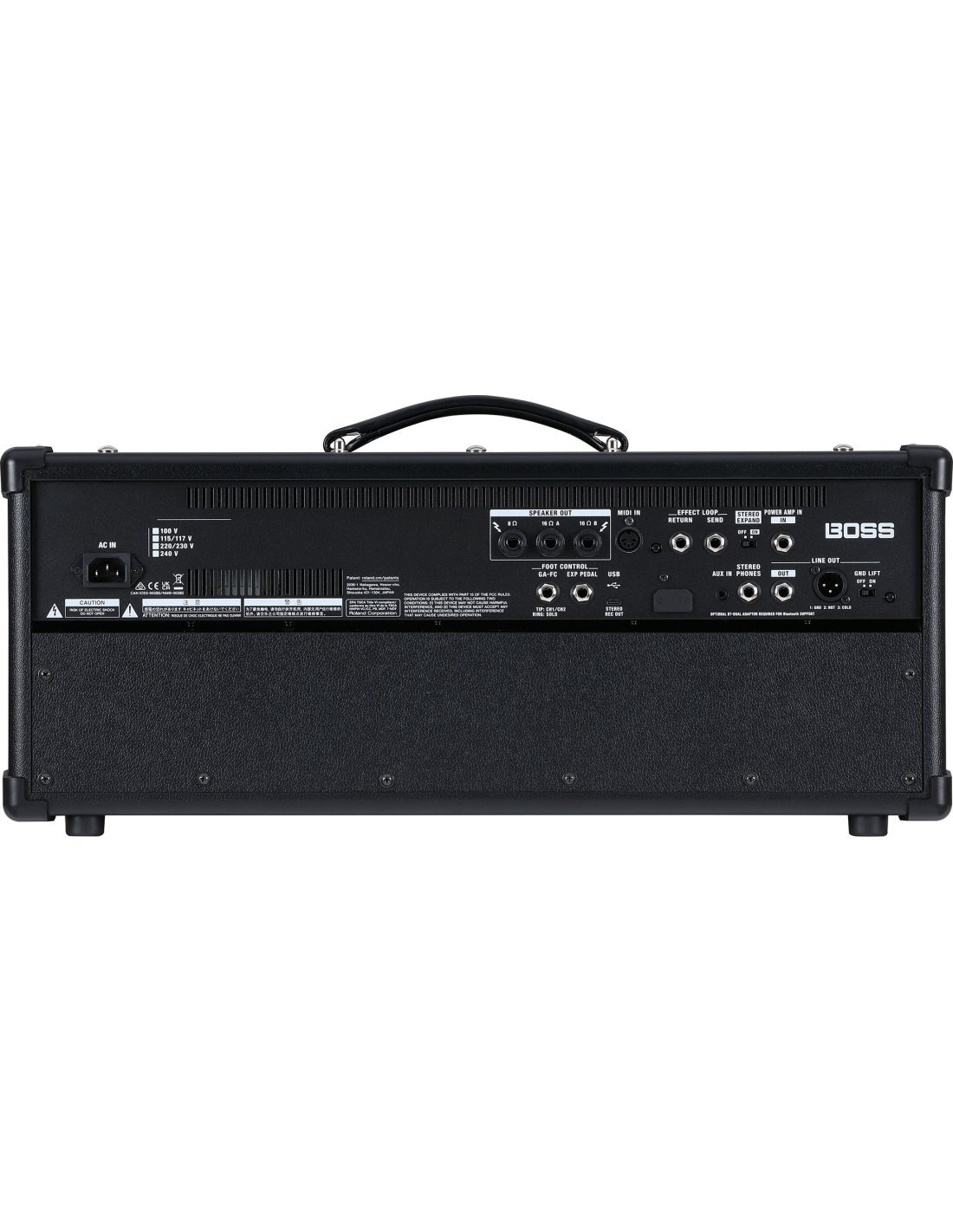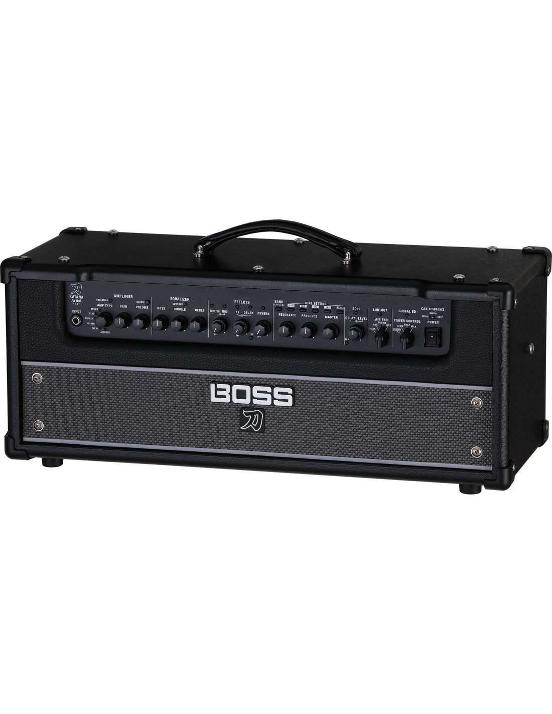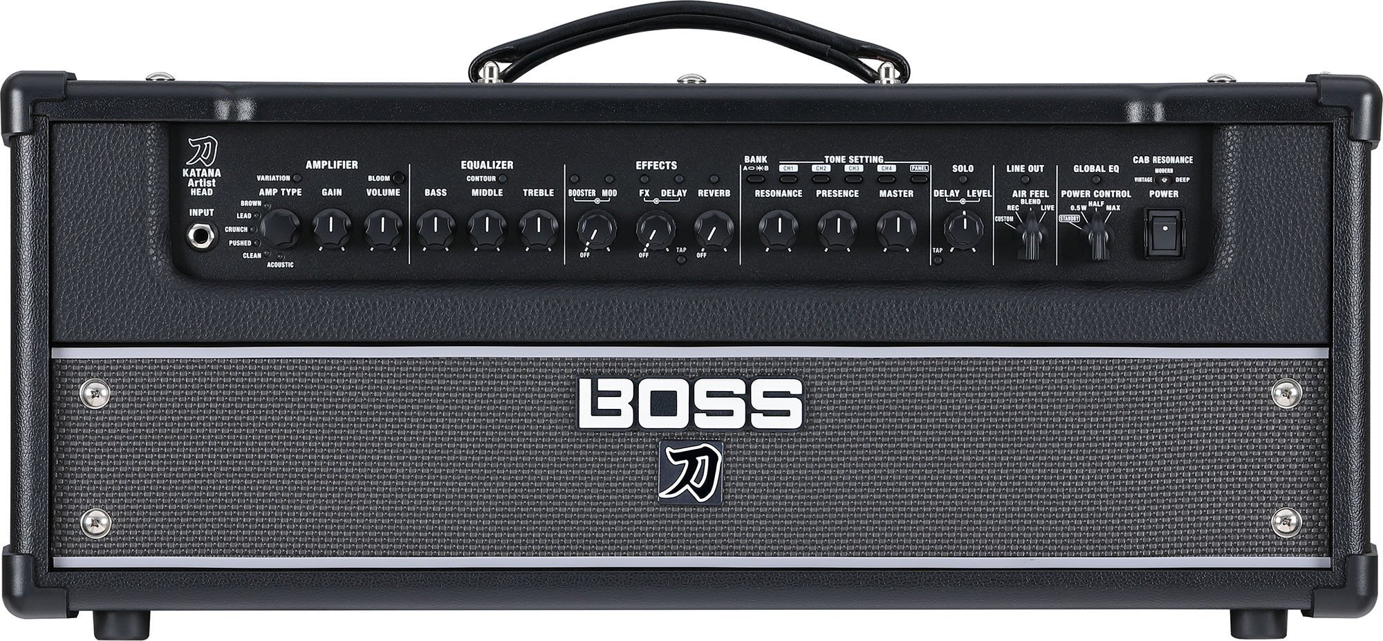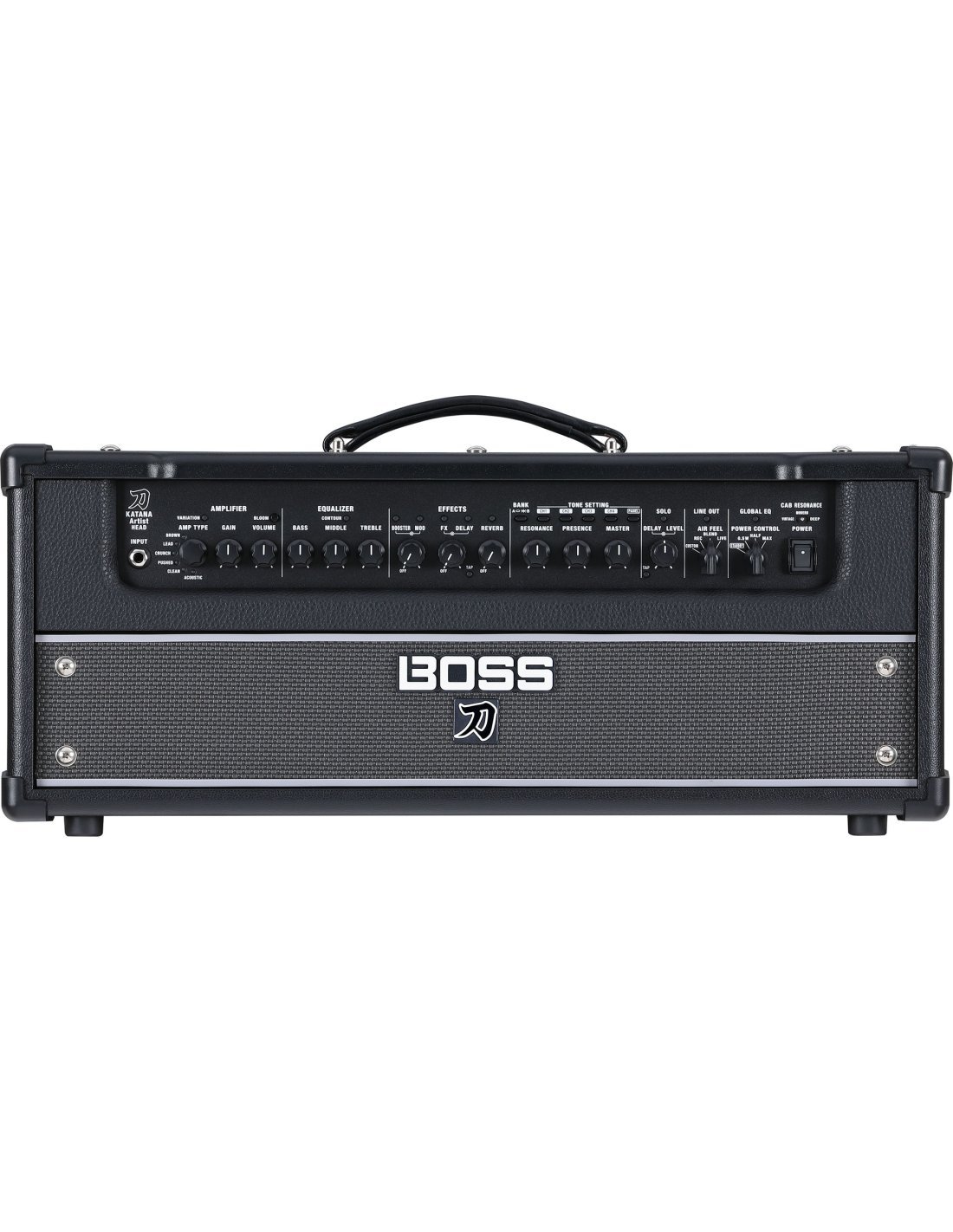 BOSS KATANA ARTIST HEAD GEN 3 ist ein High-End-Verstärker von Boss für Gitarre mit 100W Leistung in Klasse AB. Die technischen Merkmale umfassen 6 wählbare Verstärkertypen: Brown/Lead/Crunch/Pushed/Clean/Acoustic mit wählbarer Variation für jeden, ein Bloom-Schalter, der einen speziellen Schaltkreis aktiviert, der die Antwort und das Gefühl des Amps verändert, 5 unabhängige Effektsektionen: Booster, Mod, FX, Delay und Reverb, eine Solo-Sektion mit Level-Boost und einem speziellen Delay-Effekt, ein 3-Band-Equalizer mit 3 Contour-Einstellungen für klangliche Variationen, 3 wählbare Global EQ-Optionen, eine 3-Wege-Cabinet-Resonanzfunktion: Vintage, Modern und Deep, 8 Tone Setting-Speicher für das Speichern von Klangeinstellungen, eine Power Control-Funktion, die den Klang eines Amps bei maximalem Volumen nachahmt, veränderbare Parameter auch über den BOSS Tone Studio-Editor für macOS und Windows, ein 4-Wege-Line Out-Quellenschalter: Custom, Rec, Blend, Live. Es verfügt über einen XLR-balanzierten Ausgang und einen unbalancierten Klinkenausgang mit Ground Lift, einen Stereo-Expand-Schalter, einen MIDI-Eingang, Effekt Send/Return, einen Aux-Eingang über einen 3,5mm Klinkenstecker, einen Slot für einen Bluetooth-Adapter und einen Eingang für ein Expression-Pedal.