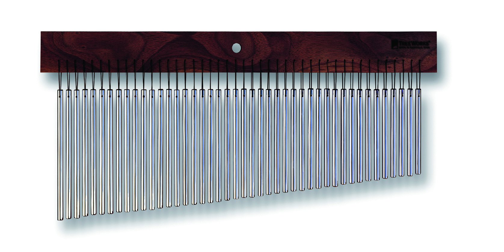 einzelne Reihe von 44 Chimes T6 aus solidem Aluminium/Titanlegierung, temperiert, poliert, Durchmesser 1/4'' - von Hand gebunden mit geflochtenen und langlebigen CordLoc™-Schnüren - Körper aus Tennessee Black Walnut - Breite 17,63'' - Handgefertigt in Nashville, Tennessee - weiche Tasche MD18 inklusive