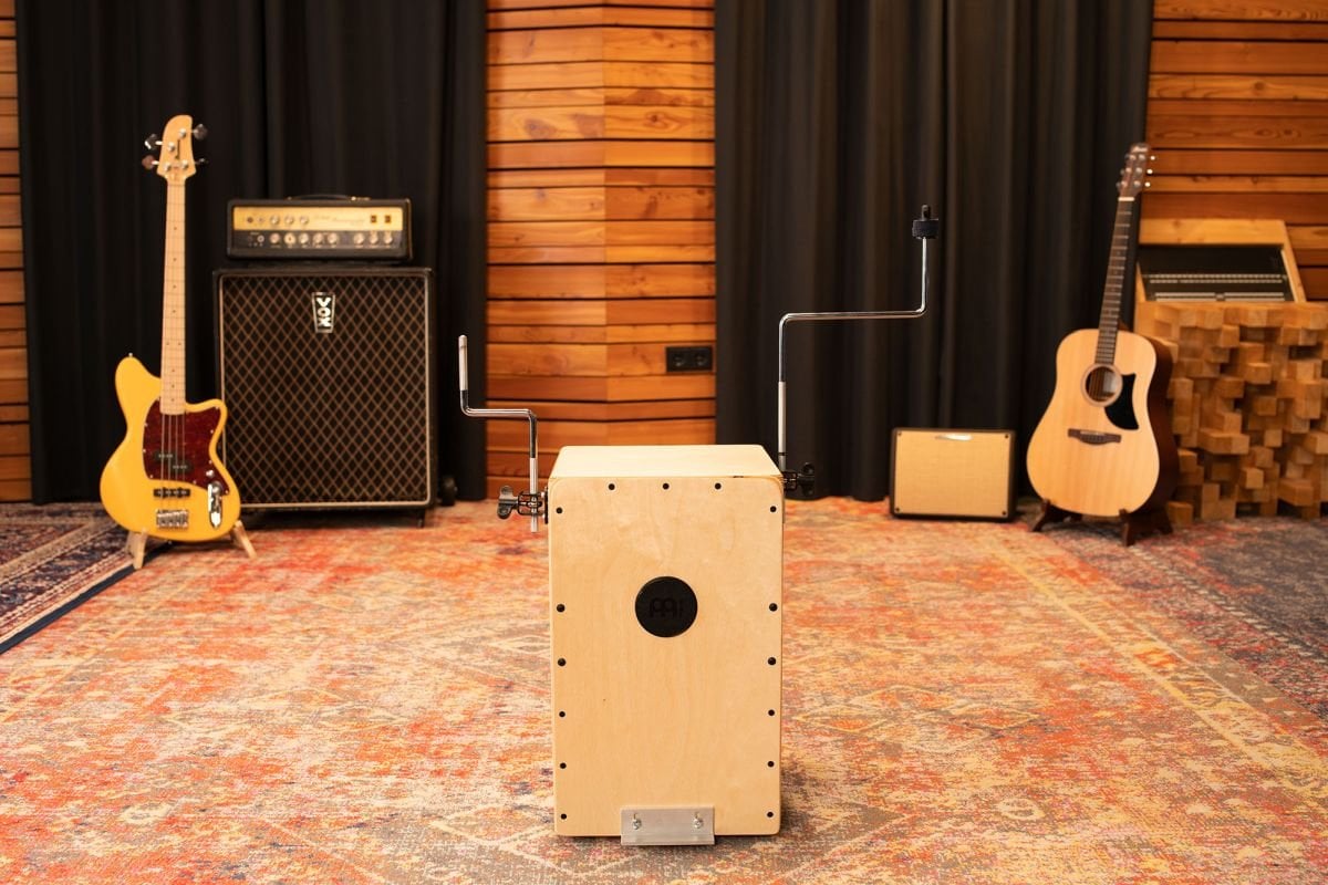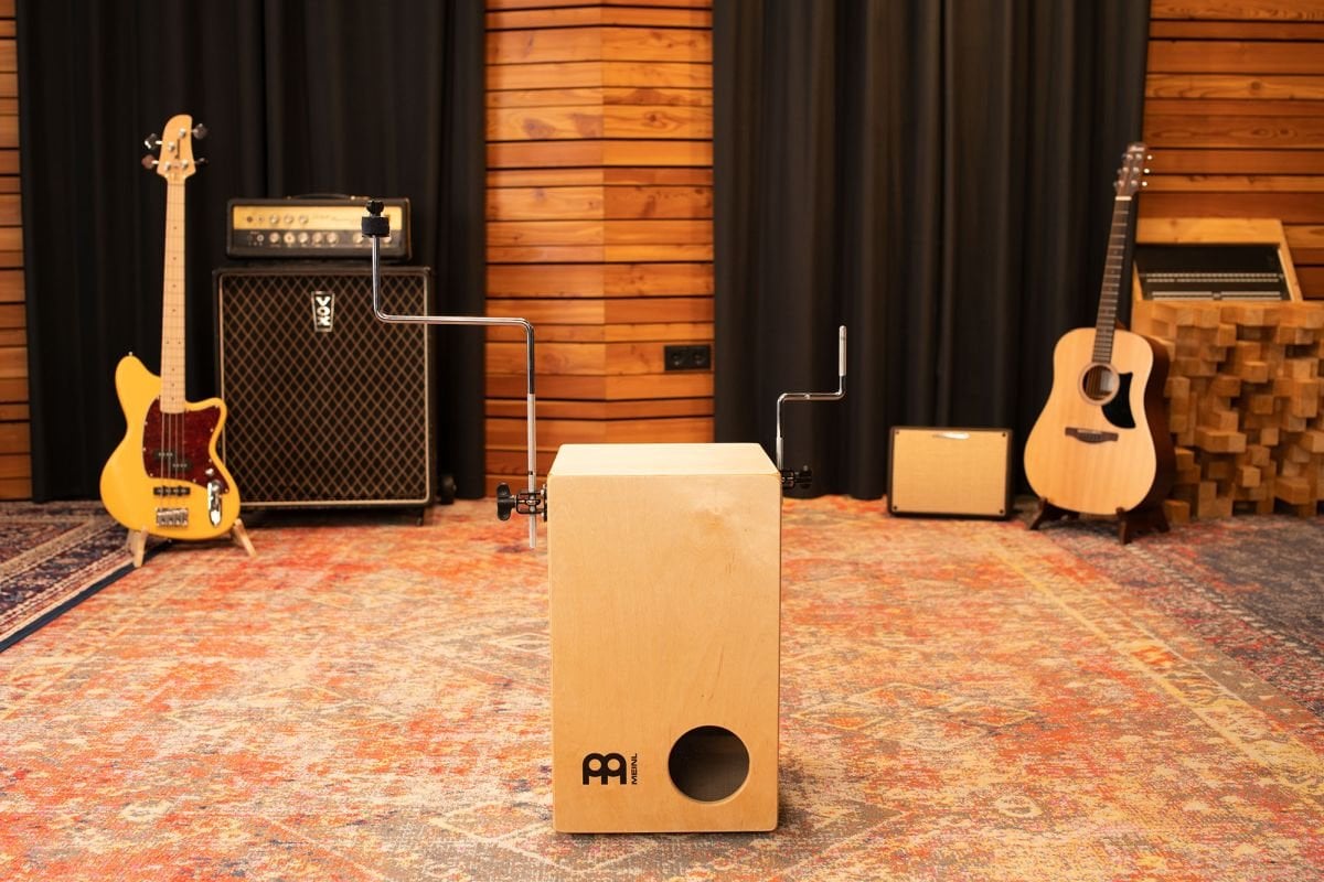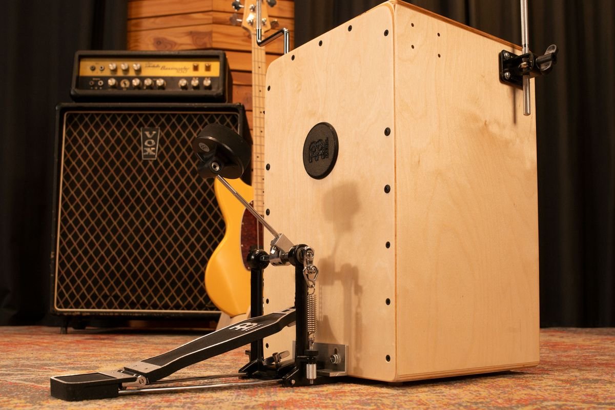 'Entwickelt, um wie eine echte Bassdrum zu klingen, ist das Meinl Percussion Kick Drum Cajon mit Funktionen ausgestattet, die es ermöglichen, ein akustisches Schlagzeug-Setup einfach zusammenzustellen. Im Zentrum befindet sich ein vollwertiges Cajon aus baltischer Birke ohne Snare oder Saiten, um dir einen reinen Bassdrum-Sound zu bieten. Auf dem Cajon sind zwei Halterungen montiert: ein Arm für Becken und ein Z-förmiger Ständer. Verwende sie, um Instrumente wie geschlossene Hi-Hats und die Meinl Cajon Snare (separat erhältlich) hinzuzufügen. Für ein authentisches Gefühl und einen echten Bassdrum-Sound ist eine robuste Metallbasisplatte zur Befestigung des Pedals sowie eine kreisförmige Schlagfläche enthalten, die für tiefere, prägnantere Töne sorgt. Der Meinl Soft Foam Cajon Beater (CPB4) ist ebenfalls enthalten.Spiele wie eine echte Bassdrum2 Halterungen zum Aufbau eines akustischen Schlagzeug-SetupsVollwertiges Cajon ohne Snare für Bassdrum-SoundInklusive Flacharm, Z-Ständer (mit Halterung), Pedalanschluss und Cajon-SchlägelAbmessungen: (HxBxT): 50x30x30cmAbmessungen in Zoll (HxBxT): 19 3/4''Hx11 3/4''Bx11 3/4''T'