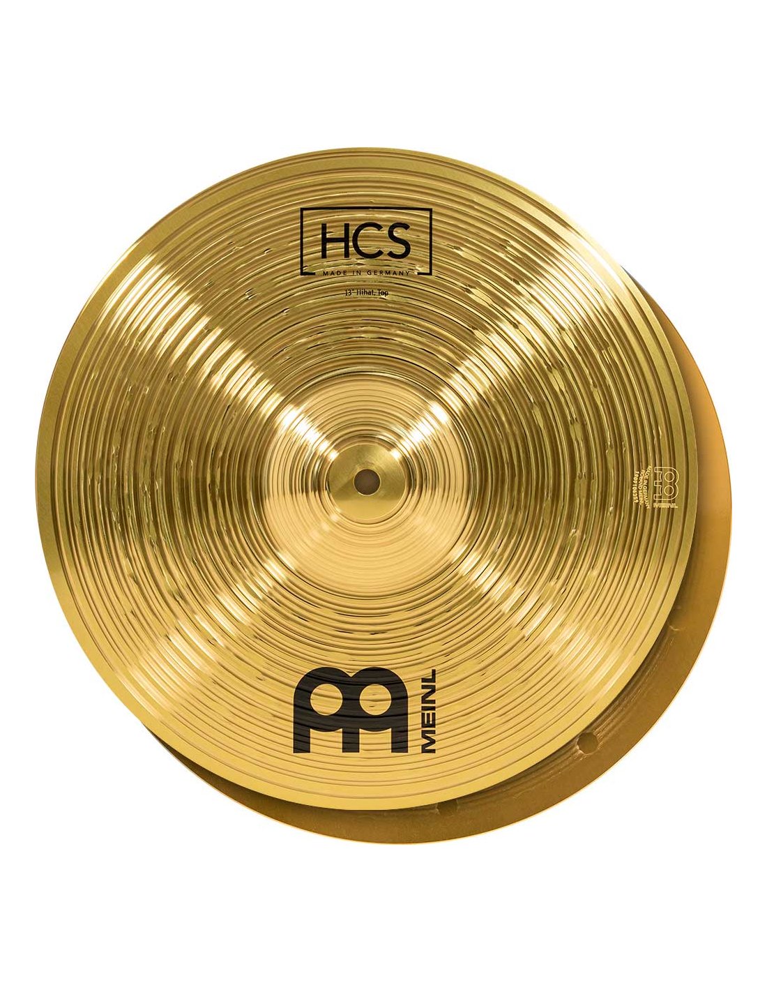 'Hi-hat 13'', Serie HCS. Die Einsteiger-Serie von MEINL bietet hervorragende Qualität, ein professionelles Aussehen und gute Klangeigenschaften zu einem fairen Preis. Alle HCS Becken sind aus MS63 Messinglegierung gefertigt und perfekt abgestimmt.