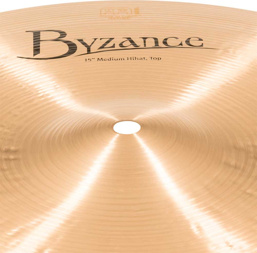 'Hi-Hat 15'' Medium, Serie Byzance Traditional. Die Becken der Serie Byzance Traditional werden in unserer Fabrik in der Türkei von Spezialisten handgefertigt und respektieren die Tradition im gesamten Prozess. Alle Becken bestehen aus B20-Bronzelegierung. Verschiedene Techniken sind am Prozess beteiligt, sowohl das Hämmern als auch das Drehen. Die traditionelle Verarbeitung verleiht der Serie den klassischen Klang des türkischen Beckens, den wir seit über einem Jahrhundert hören.