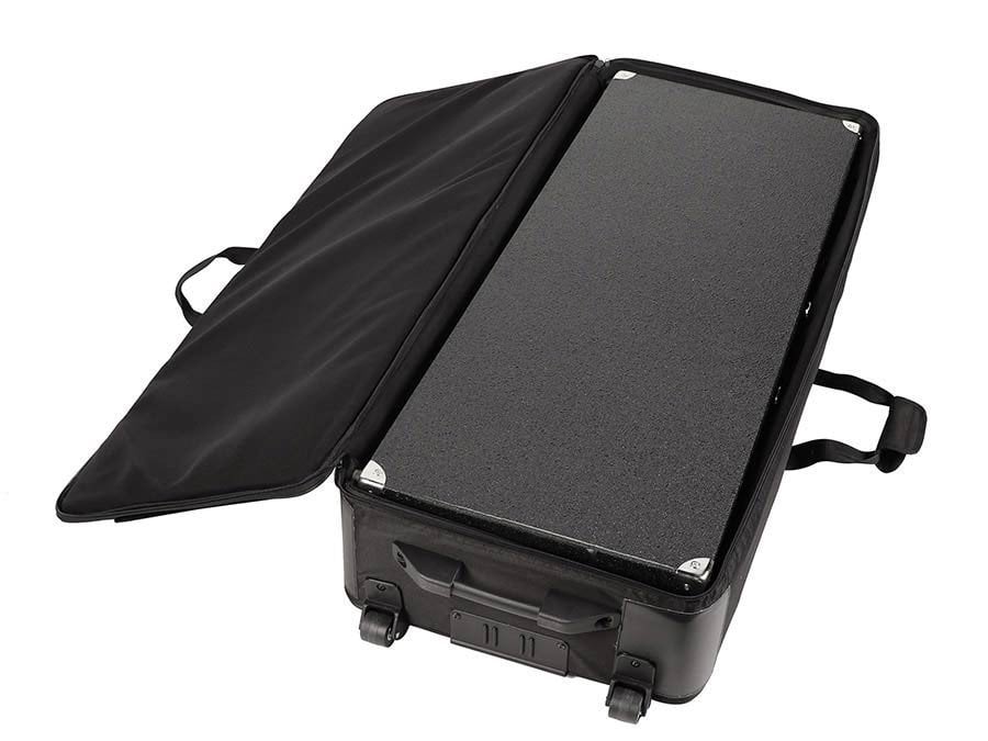 Custodia semirigida con trolley per Seven con logo Crumar Borsa trolley per Seven, rivestimento da 30 mm, nera, con ruote, 1105x450x190 mm Auch wenn das Aussehen des Crumar Seven den Eindruck erweckt, dass es in einem Flight Case gebaut wurde, ist die Tasche, in der es geliefert wird, hauptsächlich für das Aussehen gemacht. Für den Transport sollte der Seven wie jedes andere digitale Klavier behandelt werden. Die SPT-77-BK ist eine Borsa trolley für den Transport und den Schutz des Crumar Seven. Achtung: Die Räder sind für den Transport auf glatten Böden gedacht. Sie sind nicht für den Transport auf Gehwegen, Kopfsteinpflaster usw. geeignet.