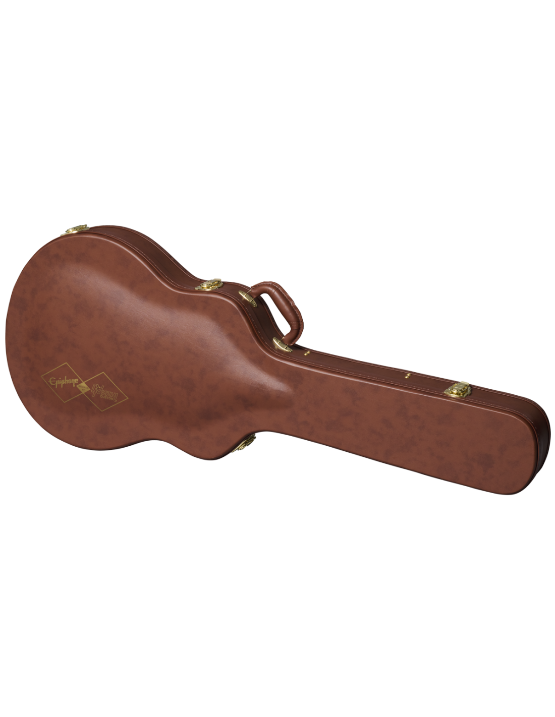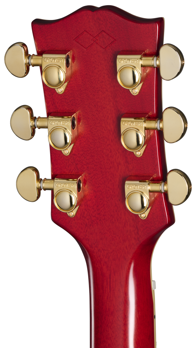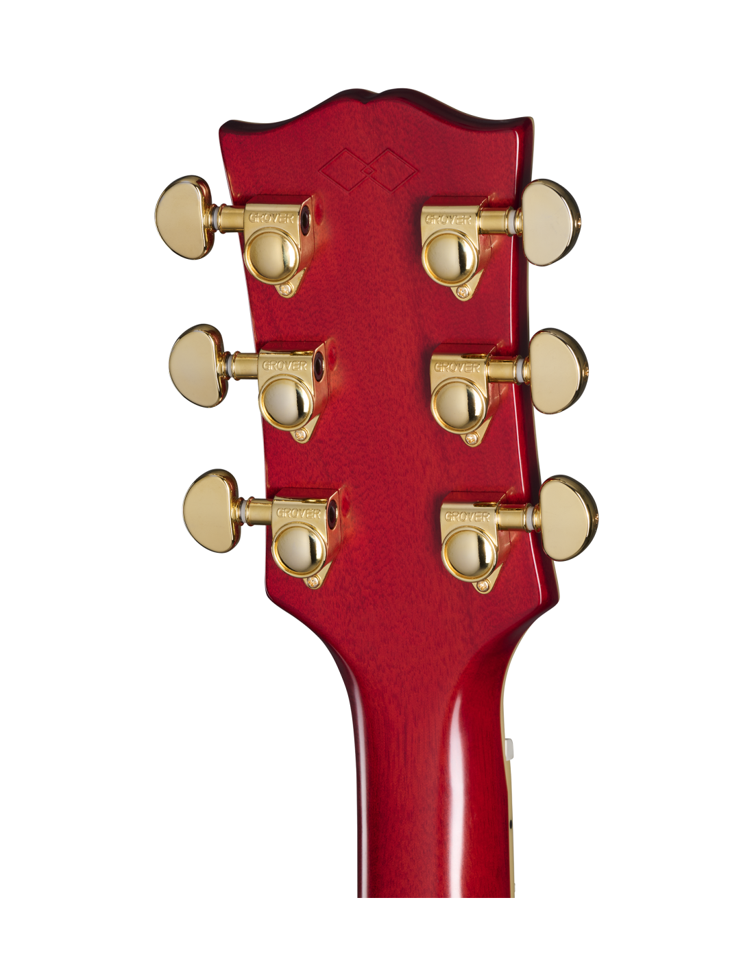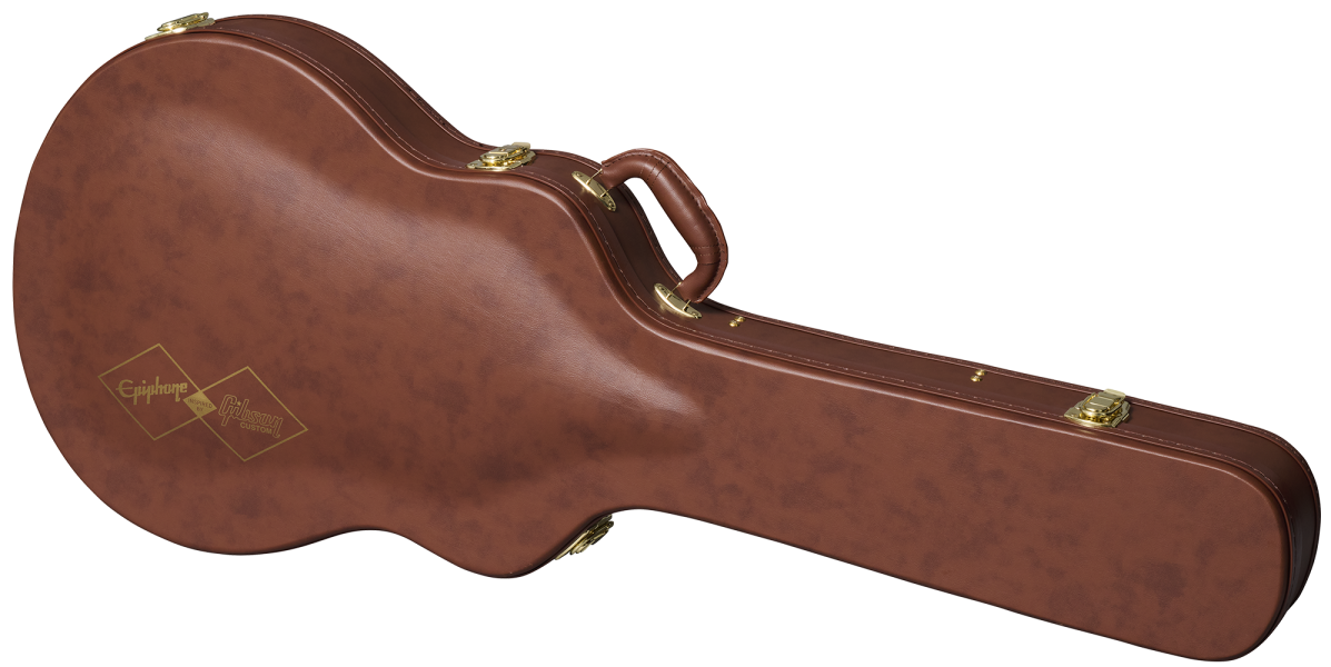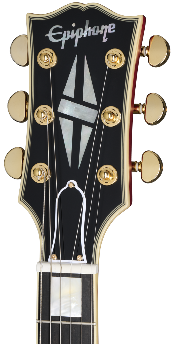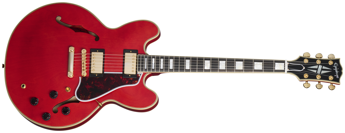 EPIPHONE 1959 ES-355 CHERRY ist eine semiakustische E-Gitarre, Serie 1959 ES-355 mit einem 5-lagigen laminierten Ahornkörper und einem zentralen Block aus Mahagoni, einem SlimTaper-Mahagonihals, einem 12" Radius aus Ebenholz mit 22 Medium Jumbo Bünden und Perlblockeinlagen, einem Graph Tech Sattel, Gold-Hardware, Grover Rotomatic Mechaniken und einem Tune-O-Matic Steg mit Maestro Vibrola Sattel. Die Elektronik in HH-Konfiguration besteht aus 2 Gibson Custombucker Humbuckern, mit 2 Lautstärke- und Tonreglern, einem 3-Wege Pickup-Wahlschalter von Switchcraft, CTS Potentiometern und Mallory Kondensatoren. Inklusive Epiphone Hardshell Case