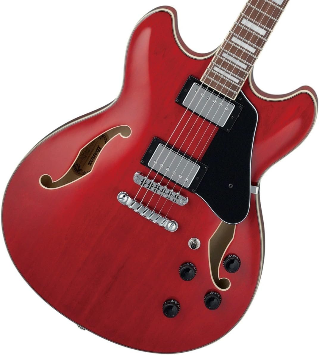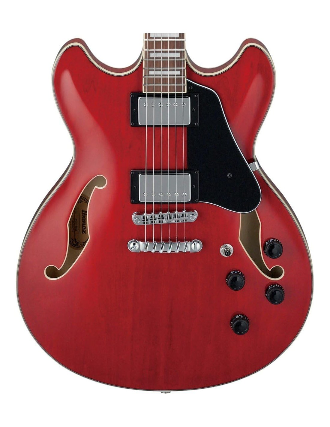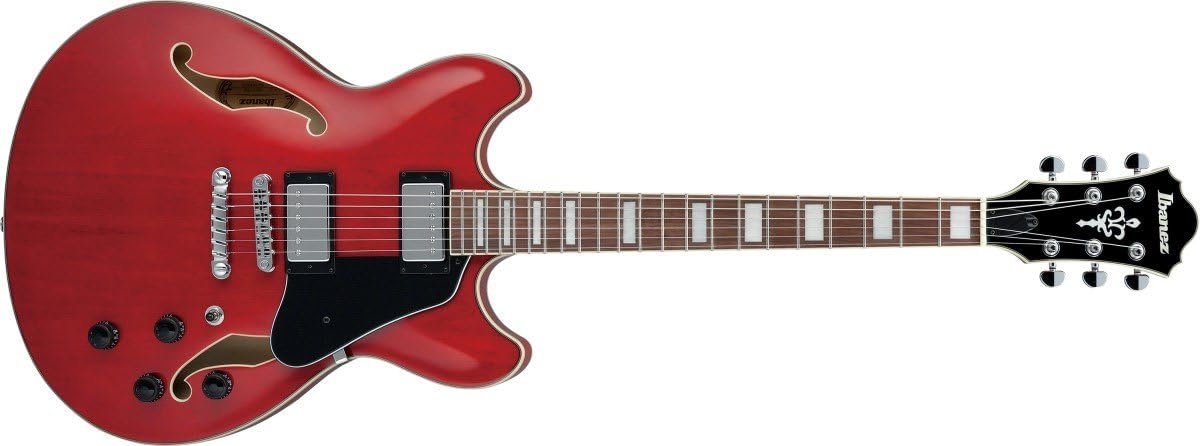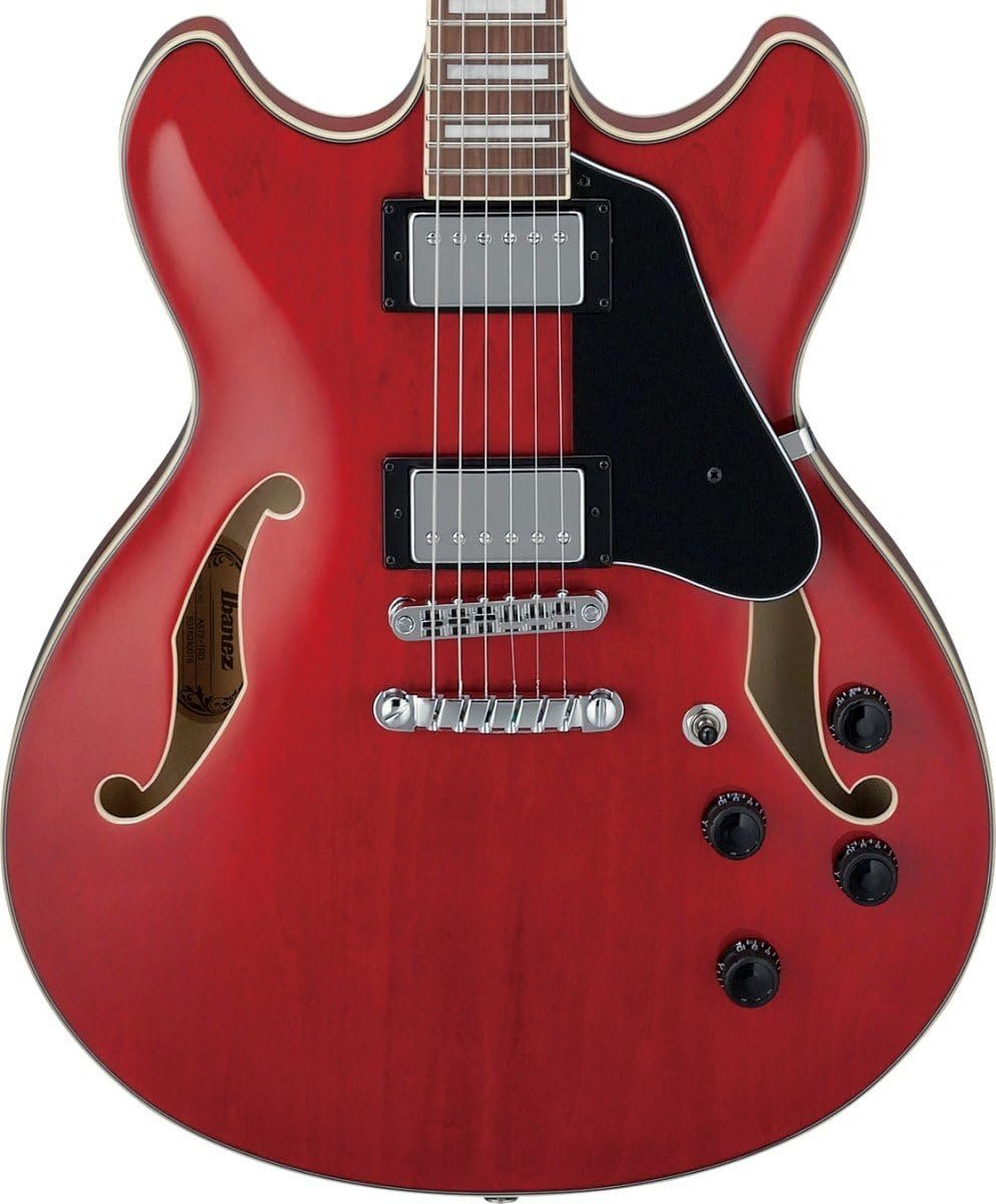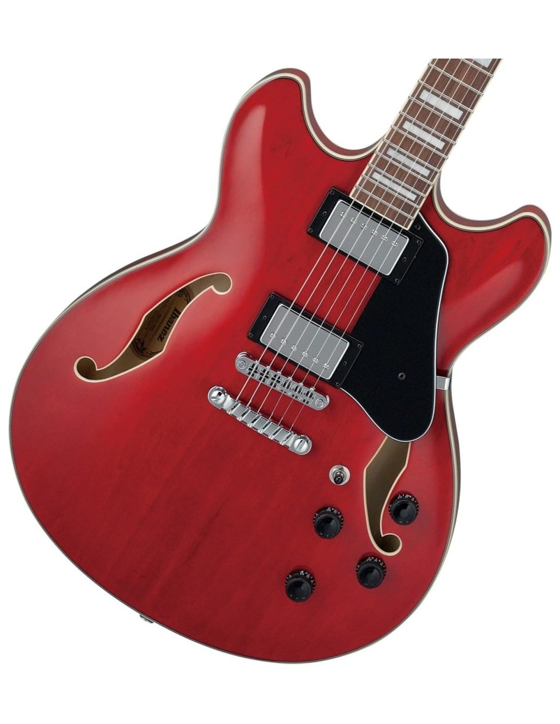 IBANEZ AS73-TCD ist eine semiakustische Hollow-Body-Gitarre, Modell Ibanez Artcore AS73, mit Korpus, Boden und Zargen aus Lindenholz, Hals aus Nyato AS Artcore Set-In, Griffbrett aus Nussbaum mit 12" Radius und 22 Medium-Bünden sowie Acrylblock-Inlays, Sattel von 43 mm, Hardware verchromt, gegossene Mechaniken mit "Half Moon chrome" Tuning-Mechaniken und Gibraltar Performer Bridge mit Quik Change III chrom Saitenhalter. Die Elektronik mit HH-Konfiguration besteht aus 2 Classic Elite Humbucker Passive/Ceramic Tonabnehmern am Steg und am Hals mit 2 Master Volume-Reglern, 2 Master Tone-Reglern, einem Tri-Sound-Schalter für 3 Spaltungen der Spule des Hals-Tonabnehmers und einem 3-Wege-Tonabnehmer-Wahlschalter.