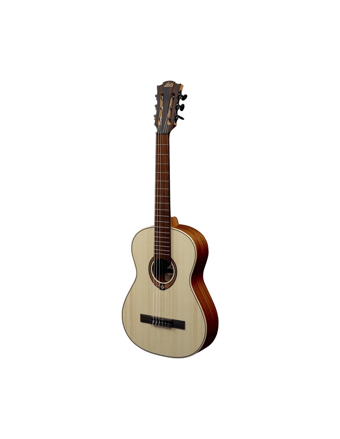 Die OC70-3 ist die linkshändige klassische Gitarre im 3/4 Format der Serie Occitania 70 von Lag, ausgestattet mit einer Decke aus massivem Engelmann-Fichte und Rücken und Zargen aus Sapelli-Mahagoni. Diese Gitarre beeindruckt durch ihren reichen und warmen Klang sowie ihre extreme Spielbarkeit. Nach dem ersten Kontakt zeigt sich die Fülle an Obertönen, ein grundlegendes Element für den klassischen Gitarristen.