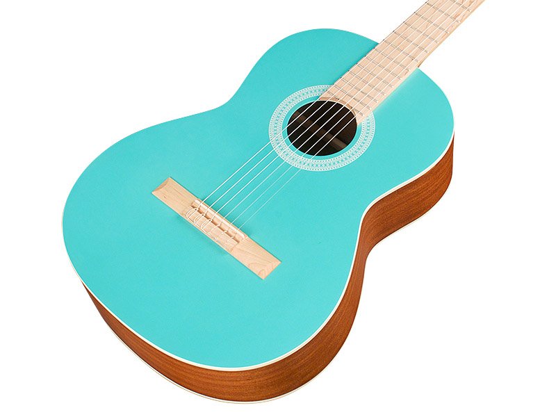 'Dona Leben in deine Musik mit der Protégé C1 Matiz! Eine neue Interpretation der traditionellen Ästhetik der Nylon-Saiten-Gitarre, kombiniert die Matiz-Serie Akzente aus Ahorn und traditionellen Hölzern in 4 ansprechenden Farben: Aqua, Coral, Pale Sky und Classic Blue. Die Fichtendecke und der Boden sowie die Zargen aus Mahagoni bieten die Projektion und Wärme, die mit einer Nylon-Saiten-Gitarre verbunden sind, während der Sattel, die Brücke und das Griffbrett aus Ahorn der C1 Matiz einen völlig neuen Look mit einer lebhaften Klangreaktion verleihen. Die satinierte Polyurethan-Oberfläche bietet eine Schutzschicht gegen Kratzer und Schrammen, während die ''Ghost''-Rosette, die auf der Grundlage unserer traditionellen Holzrosette entworfen wurde, es den ansprechenden farbigen Decken der C1 Matiz ermöglicht, zu strahlen und im Mittelpunkt zu stehen. Inklusive einer passenden Gig-Bag aus recyceltem Nylon, die das Instrument verantwortungsbewusst und nachhaltig schützt.'