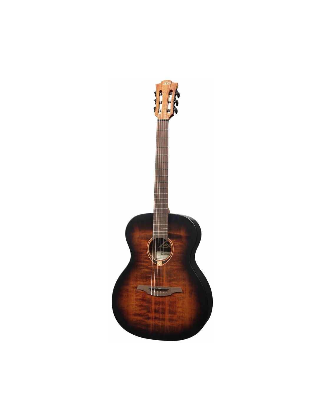 Die LAG TN70A B&B ist eine akustische Gitarre mit 6 Saiten im Auditorium-Modell. Die technischen Merkmale umfassen: massive Engelmann-Fichte als Decke, Boden und Zargen aus Mahagoni swietenia, Griffbrett und Steg aus Branko Wood, Hals aus Okumè-Mahagoni, Sattel aus Graphit, offene Mechaniken. natürliche Farbgebung. Satinierte, offenporige Oberfläche mit schwarzem, satiniertem Hardware.