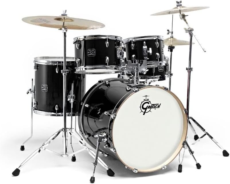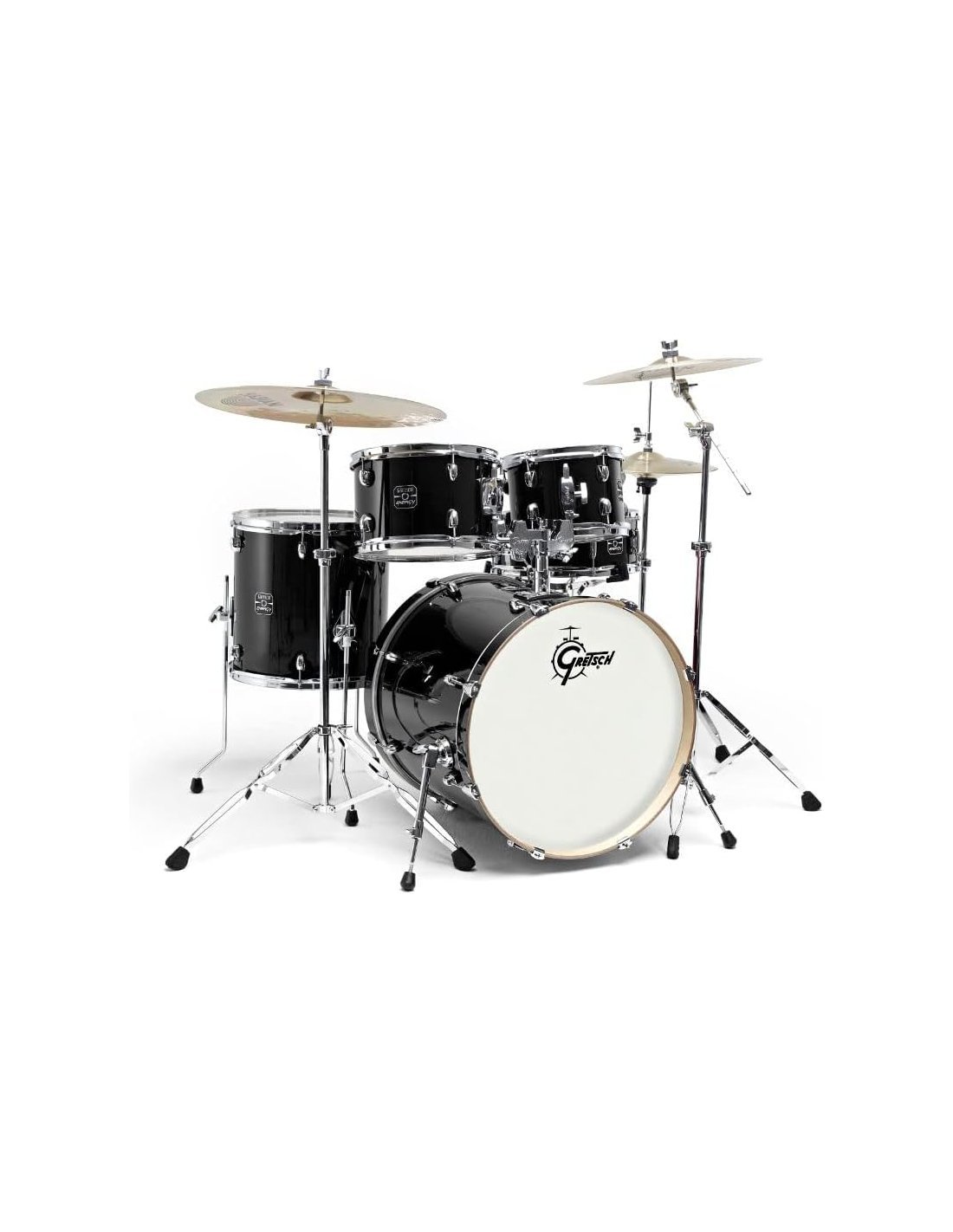 GRETSCH DRUMSET ENERGY BLACK ist ein komplettes Schlagzeug-Set der Gretsch Energy Standard-Serie, das aus 5 Trommeln (Bassdrum, Snare, 2 Toms und Floor Tom) mit vollständigem Hardware, einem Set von 3 Paiste 101 Becken, einem Bassdrum-Pedal und einem Sitz besteht. Die technischen Merkmale umfassen 7-lagige Pappel-Trommeln, 1,5 mm Stahlreifen, vormontierte Gretsch-Felle von Remo, eine Bassdrum von 22" x 18", ein Tom von 12" x 8", ein Tom von 10" x 07", ein Floor Tom von 16" x 16", eine Snare von 14" x 5.5", ein Set von 3 Paiste Becken der Serie 101, darunter 1x Hi Hat von 14", 1x Crash-Becken von 16" und Ride-Becken von 20", 1 Boom-Beckenständer, 1 gerader Beckenständer, 1 Hi Hat-Ständer, 1 Snare-Ständer und 1 Bassdrum-Pedal mit Kettenantrieb.