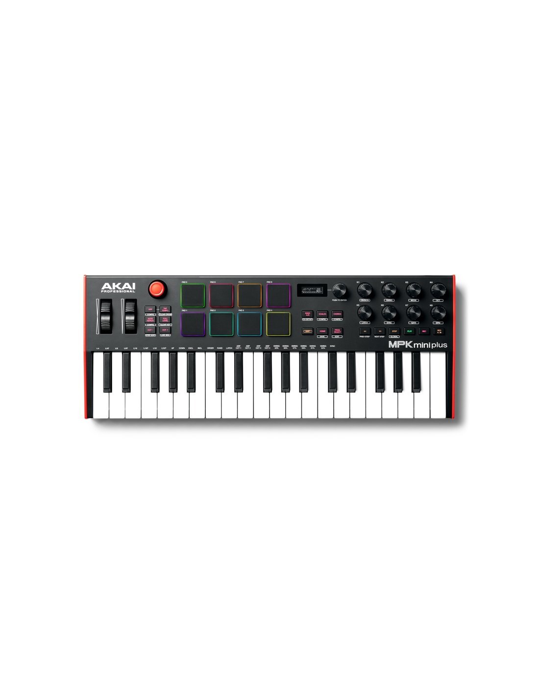 AKAI MPK MINI PLUS ist eine kompakte USB MIDI-Tastatur mit 37 Tasten, einem polyphonen Step-Sequencer und einem Arpeggiator, ausgestattet mit 8 Pads, 8 rotierenden Encodern mit 360°, einem Rad für Pitch Bend und Modulation, einem X/Y-Joystick und einem Eingang für ein Sustain-Pedal. Perfekt für die Integration in jedes Setup dank der CV-, Gate- und Modulationsausgänge, analogen Clock In und Out, MIDI In und Out DIN.