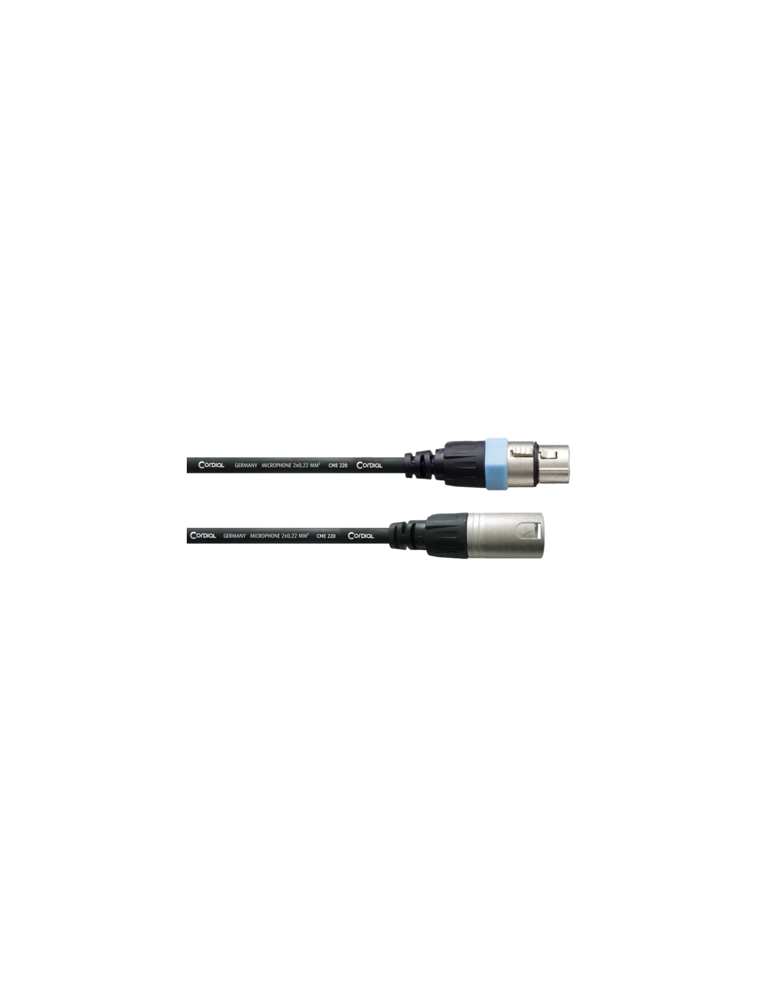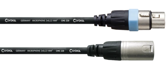 CORDIAL CCM 10FM ist ein symmetrisches Mikrofonkabel mit XLR-Anschlüssen (m/w) mit einem CME 220 Kabel, das mit PVC ummantelt ist, und Rean Neutrik Anschlüssen