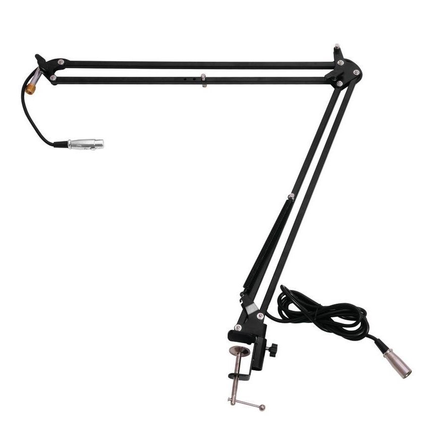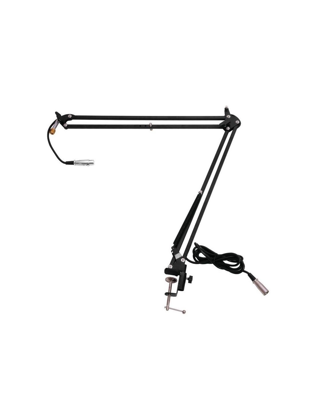 OMNITRONIC TMA1N TISCHMIKROFONARM ist ein teleskopischer Tischarm aus Metall zur Installation von Mikrofonen für Podcast- und Broadcast-Anwendungen, mit 5/8"-Gewinde, Tischklemme mit Schraube, vorinstalliertem 5m XLR-Kabel