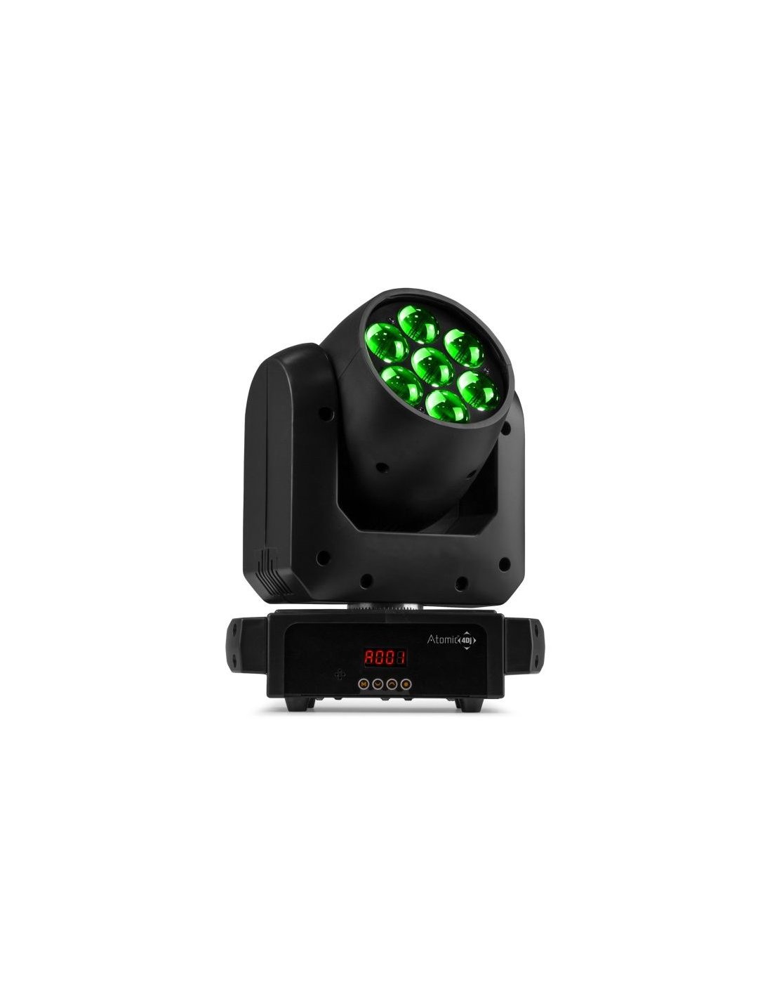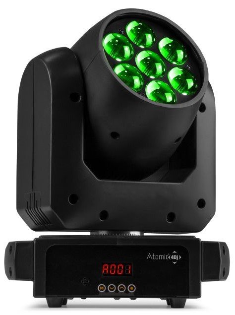 ATOMIC4DJ FLY720 ist ein beweglicher Wash-Kopf, ausgestattet mit 7 LEDs zu je 20W, 4-in-1 RGBW und einer elektronischen Zoomfunktion. Er bietet eine Bewegungsauflösung von 16 Bit und einen Pan- und Tilt-Bereich von 540°/190° und kann über DMX 512, im Standalone Master/Slave-Modus sowie im Auto- und Sound-Modus gesteuert werden. Er verfügt über eine 3-polige XLR DMX-Verbindung, ein Anzeige-Display und eine Kühlung durch einen temperaturgeregelten Ventilator.