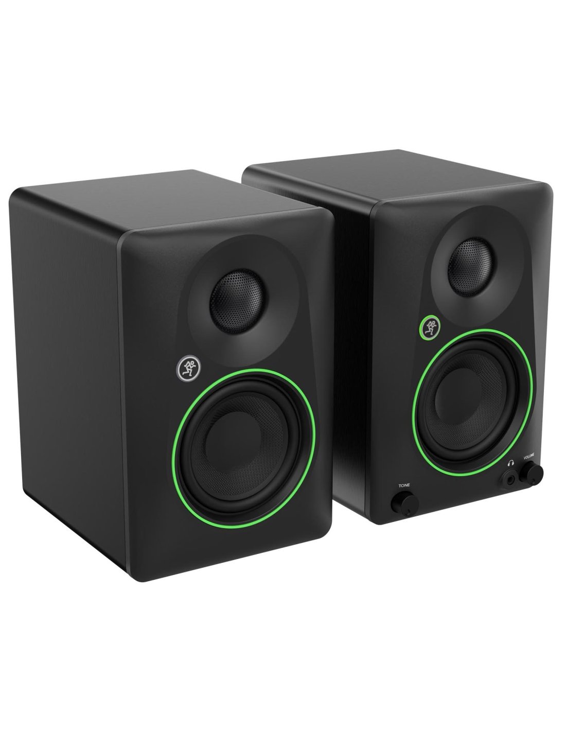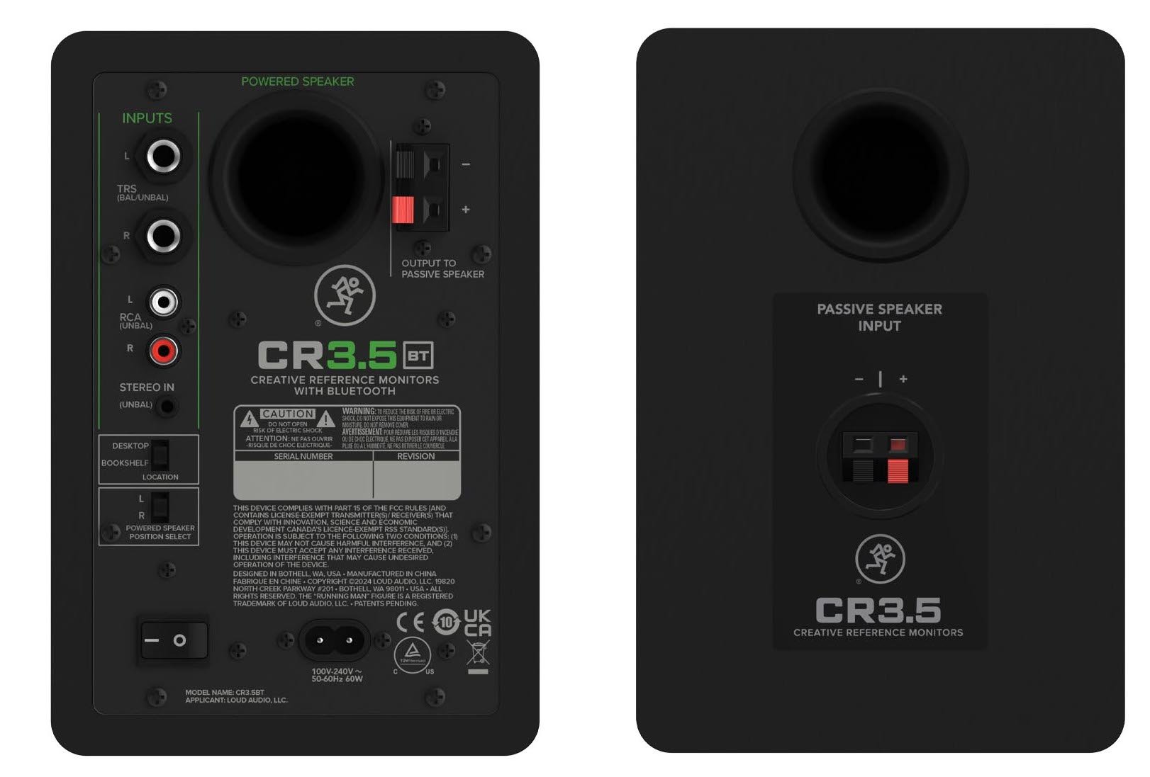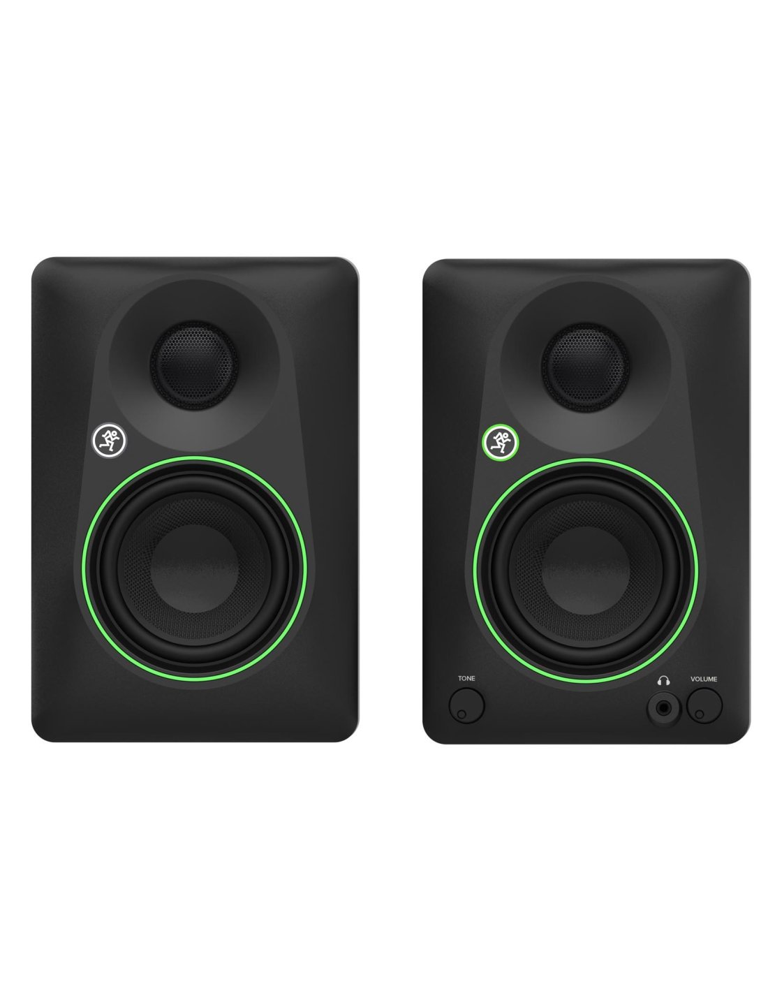 MACKIE CR3.5BT ist ein Paar aktiver Studiomonitore mit 50W RMS Leistung und Bluetooth-Technologie. Die technischen Merkmale umfassen 3,5" geflochtene Woofer, Seidenkalottentweeter mit Schutzgitter, Klangregelung über einen Encoder auf dem Frontpanel, Platzierungsschalter auf dem Rückpanel Desktop/Bookshelf zur Klangoptimierung, Schalter für die Platzierung des aktiven Lautsprechers L/R, Bluetooth-Konnektivität zur Kopplung mit Geräten, integrierter Kopfhörerausgang mit Lautstärkeregelung. Auf der Rückseite beider Lautsprecher befindet sich ein Bassreflex, während der aktive Lautsprecher Eingänge über 6,3mm Klinke L/R bal/unbal, RCA L/R bal/unbal und Stereo-Eingang über 3,5mm Mini-Klinke TRS sowie einen Ausgang für den passiven Lautsprecher mit Klemmen L/R hat. Enthält 3,5mm Klinkenkabel, 5,5mm Klinke/RCA-Kabel, Lautsprecher- und Stromkabel, schaumstoffbeschichtete Füße.
