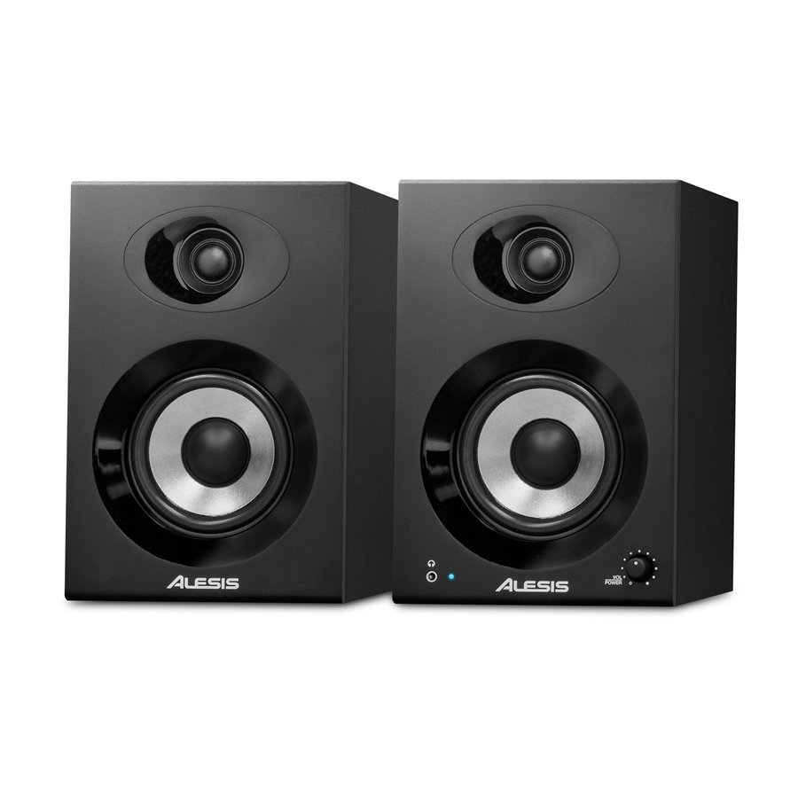 ALESIS ELEVATE 4X. Paar von Desktop-Monitoren 1x4" mit 50W Leistung. Die technischen Merkmale umfassen einen einzelnen 4" Woofer, einen 1" Seidenkalotten-Hochtöner, Gehäuse aus Holz. Der rechte Monitor verfügt über RCA L/R Audioeingänge und TRS 1/4, Bass Boost On/Off-Schalter, Subwoofer-Ausgang über 3,5mm Klinke, Lautsprecher-Ausgang über 3,5mm Stereo-Klinke, am linken Monitor befindet sich der Stereo-Eingang zur Verbindung mit dem rechten Monitor über 3,5mm Klinke. Im Lieferumfang enthalten ist ein 3,5mm Klinke-Klinke Kabel zur Interconnection der Monitore.