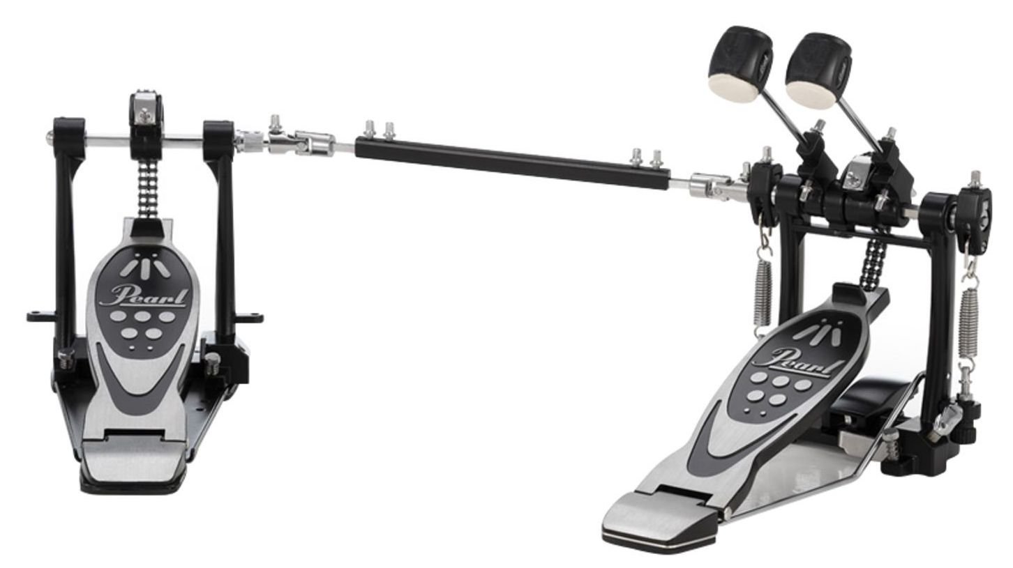 PEARL P-532 ist ein Doppelpedal mit doppelter Kettenübertragung, doppeltem Filz-/Kunststoffschlägel, Fußplatte am Slave-Pedal und einem verstellbaren Schlägelwinkel über das Uni-Lock-System
