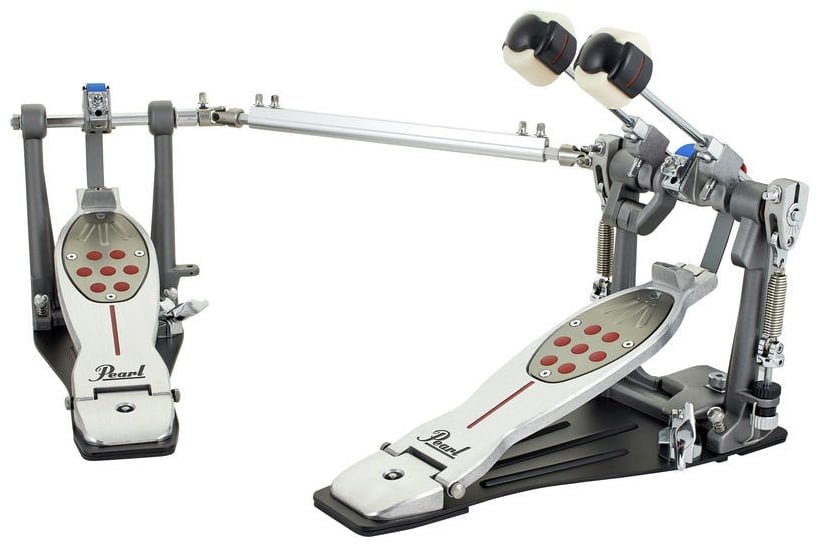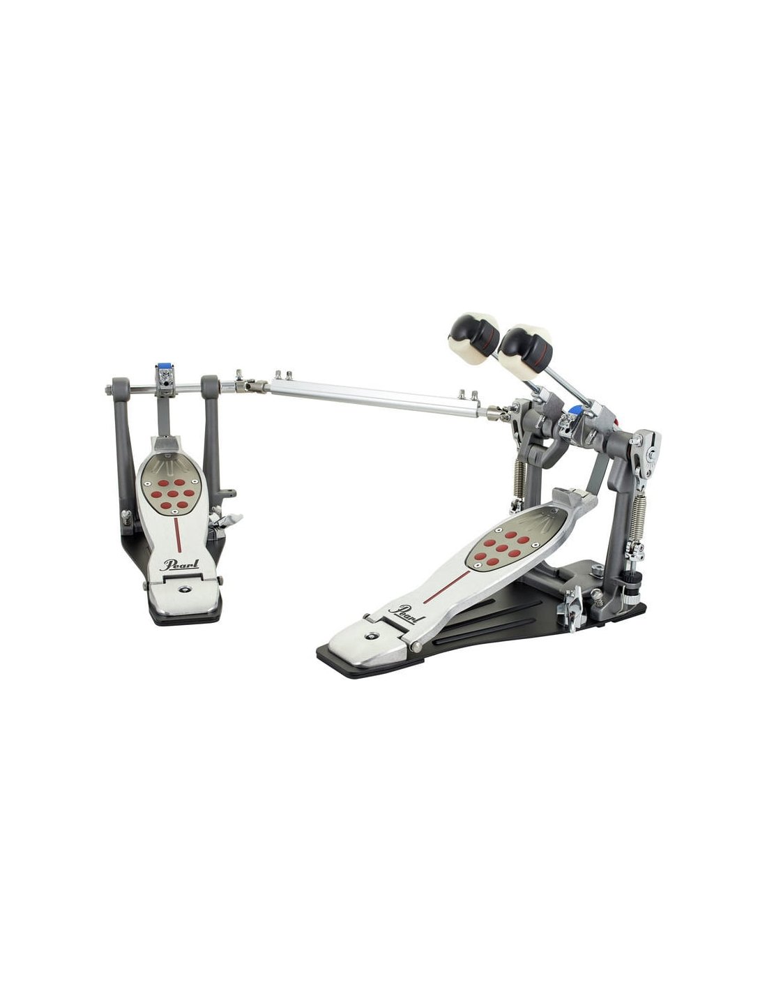 PEARL P-2052B ELIMINATOR DOUBLE BD PEDAL BELT DRIVE. Doppelpedaal der Eliminator-Serie für Bassdrum mit austauschbarem Nocken und Riemenantrieb für maximale Einstellung und Personalisierung, Fußplatten mit NiNja-Lagern für maximale Gleiteigenschaften, Befestigungssystem am Reifen Clamp Roller Hoop, Power Shifter mit 3 Positionen, Uni-Lock Schlagwinkel, Click-Lock Spannungsregulierung, Core Quadbeater Schlägel. Inklusive Tragetasche.
