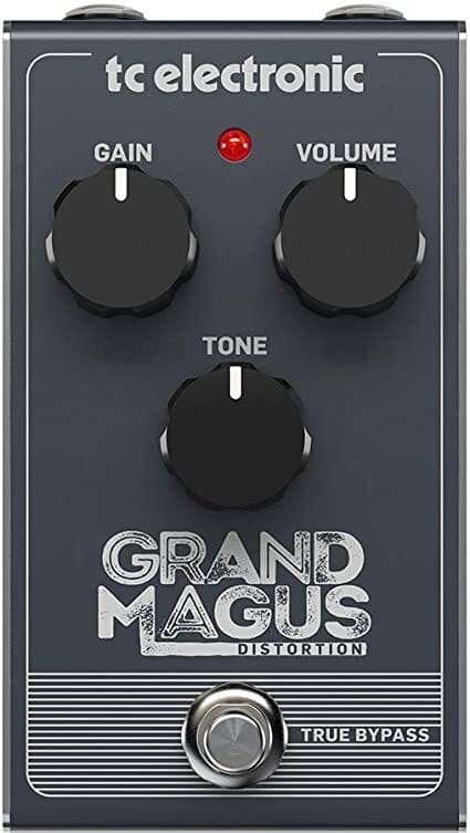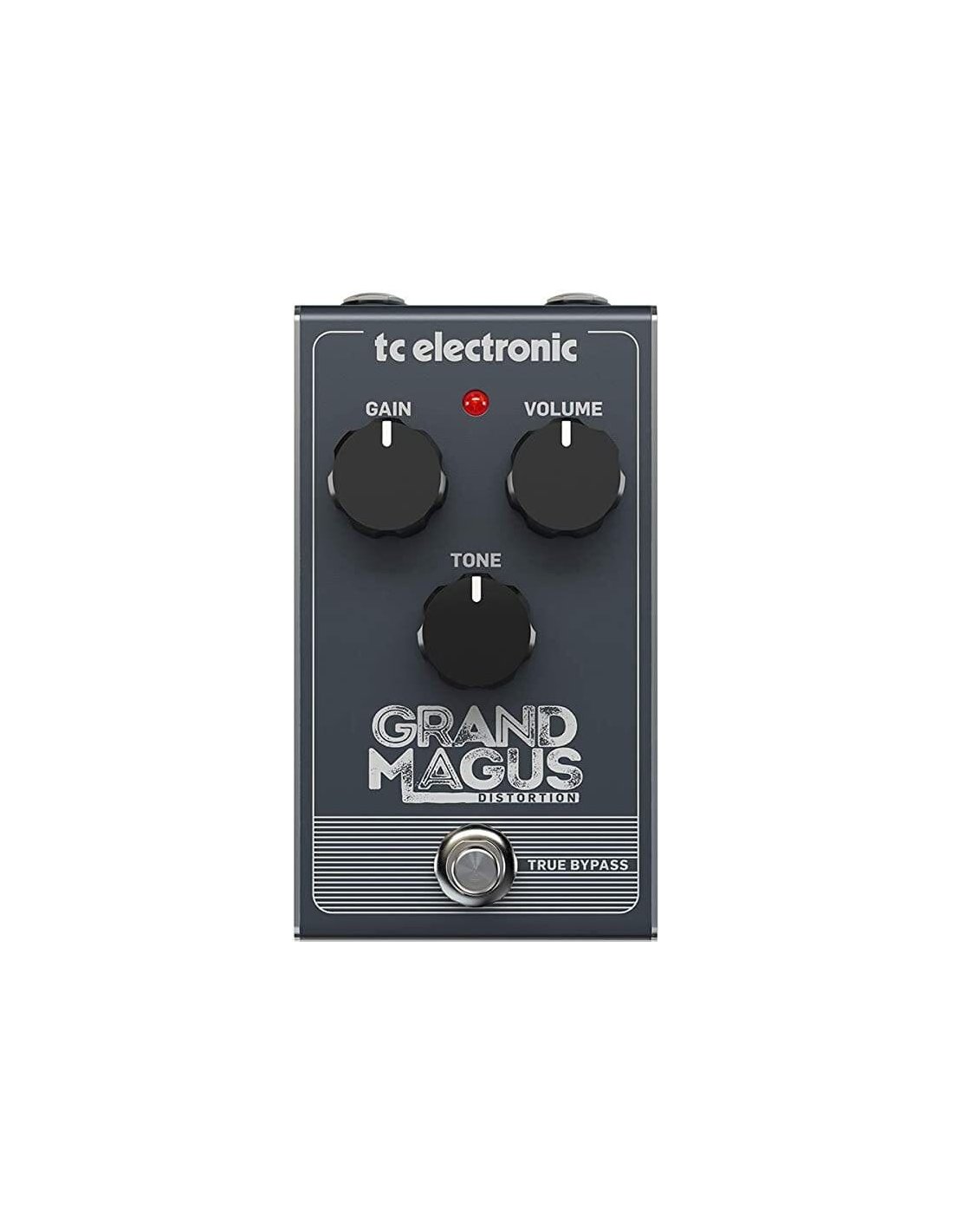 TC ELECTRONIC GRAND MAGUS DISTORTION. Verzerrpedal für Gitarre. Die technischen Merkmale umfassen Gain-Regler zur Steuerung des Gewinns, Volume zur Regelung der Lautstärke des Effekts, Tone zur Modellierung des Tonlevels. Funktioniert mit 9V-Batterie oder Netzteil (nicht enthalten). True Bypass.