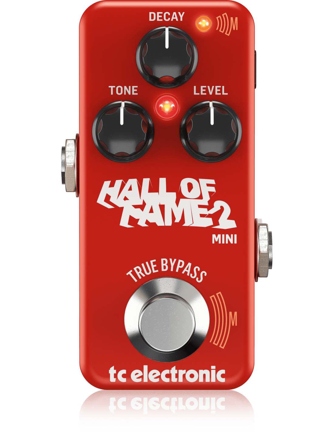 Der Hall of Fame 2 Mini Reverb ist ein Effektpedal für Hall von TC Electronic. Es verfügt über Shimmer-Reverb, dedizierte Regler für Decay, Tone und Level, einen MASH-Fußschalter, der ähnlich wie ein Expression-Pedal funktioniert und Zugang zur Steuerung der Parameter bietet, einen True-Bypass-Schalter, wenn das Pedal ausgeschaltet ist, und die Analog-Dry-Through-Funktionalität, die die Klangintegrität beim Einschalten aufrechterhält.