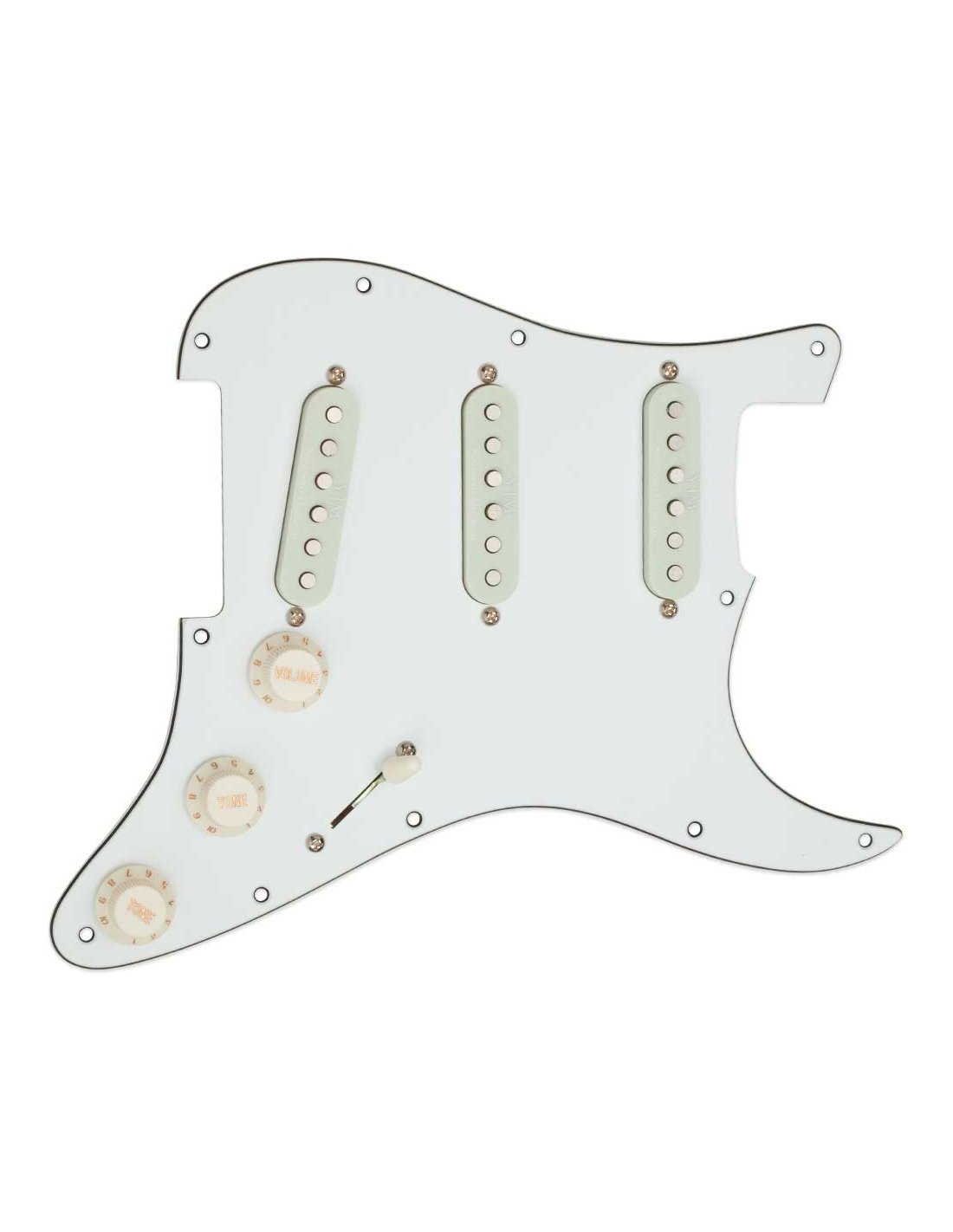 11203-33-OW-PGD Dieses voll ausgestattete Strat-Pickguard wurde von Yngwie selbst spezifiziert, um sicherzustellen, dass Ihre Strat mit diesem Setup The Fury liefert. Das YJM Fury Loaded Strat-Pickguard ist bereit, in Ihre Stratocaster mit einem 11-Schrauben-Loch-USA-Muster eingebaut zu werden. Dieses vorkonfigurierte Setup umfasst ein kalibriertes Set der YJM Fury Signature-Pickups und den hochgeschwindigkeitsfähigen, schmierfreien YJM-Volumenpotentiometer, der Yngwies Anforderungen an Geschwindigkeit und Reaktionsfähigkeit erfüllt. Diese handgefertigten Pickups werden in Santa Barbara, CA, gebaut und in die Pickguards eingebaut. Das Brückenmodell ist so konzipiert, dass es Yngwies harmonische Überwältigung bewältigt, und es liefert eine präzise, artikulierte Antwort, die genau die richtige Menge an Höhen hat, ohne hart oder spröde zu klingen. Das Brückenmodell ist heißer gewickelt, um eine bessere Balance mit den Hals- und Mittelpickups zu bieten. Das Hals- und Mittelmodell ist so gestaltet, dass es das Gleichgewicht von Yngwies flüssiger Linkshändertechnik mit seinem breiten Mix aus Rechtshänderschlag hervorhebt, für einen Ton, der süß und sanft ist. Es gibt genau die richtige Menge an Höhen, um diesen Pickup extrem artikuliert und besonders reaktionsschnell auf Dynamik zu machen. In den 80er Jahren haben wir eine spezielle Unterwicklung patentiert, die tatsächlich negatives Brummen in den Pickup-Kreis einspeist, und am Ende des Produktionsprozesses stimmen wir jeden Pickup für maximale Geräuschunterdrückung ab. Sie erhalten all die großartigen Eigenschaften eines klassischen Strat-Pickups und kein Brummen mit unseren Stack-Pickups.
