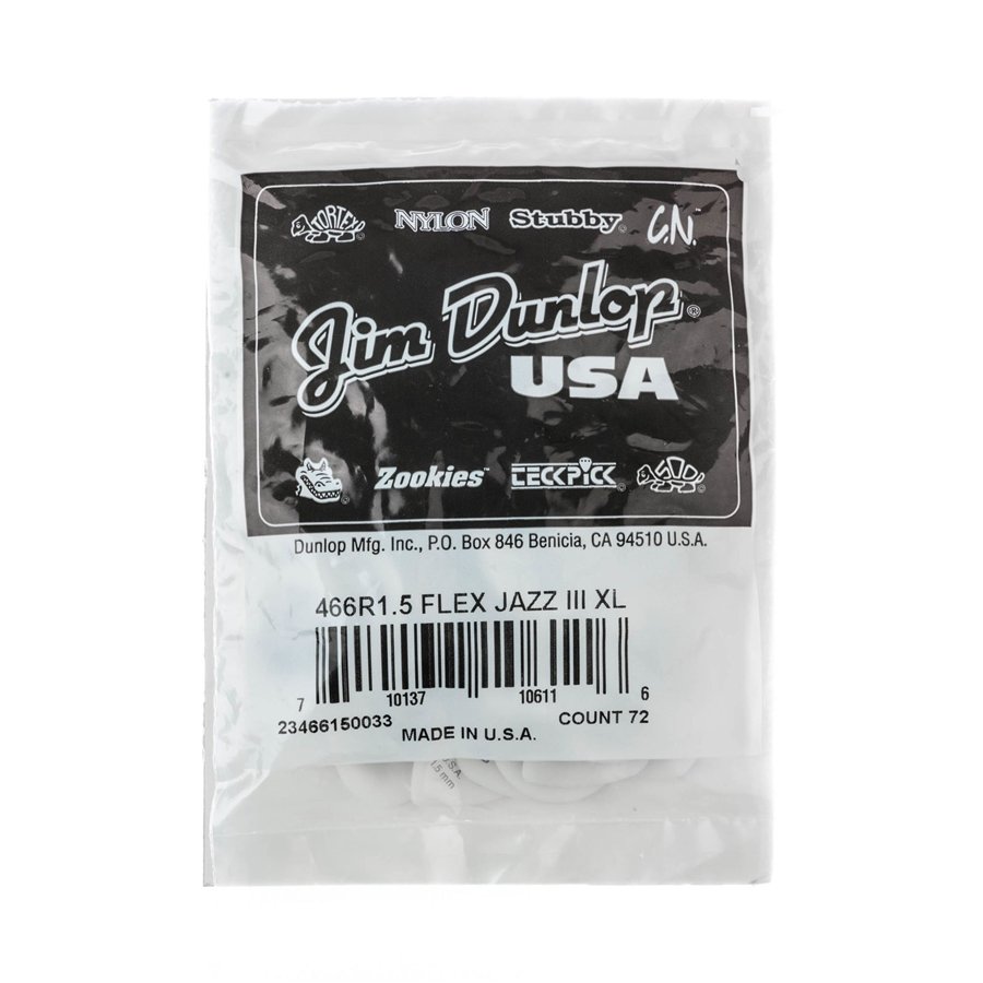 Dunlop 466R150 Tortex Flex Jazz III XL 1.5 mm Bag/72