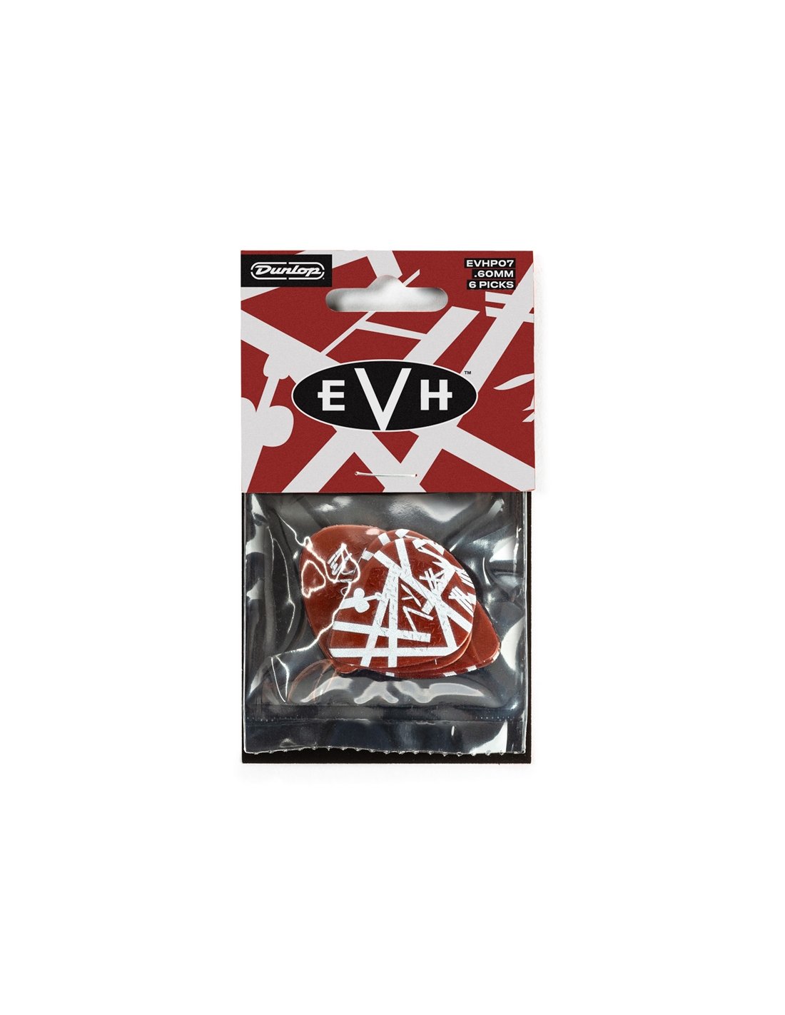 EVHP07 Shark ist das 6er-Pack Max-Grip® Plektren von Eddie Van Halen von Dunlop, mit dem unverwechselbaren Artwork, das auf seiner Gitarre "Shark" basiert.