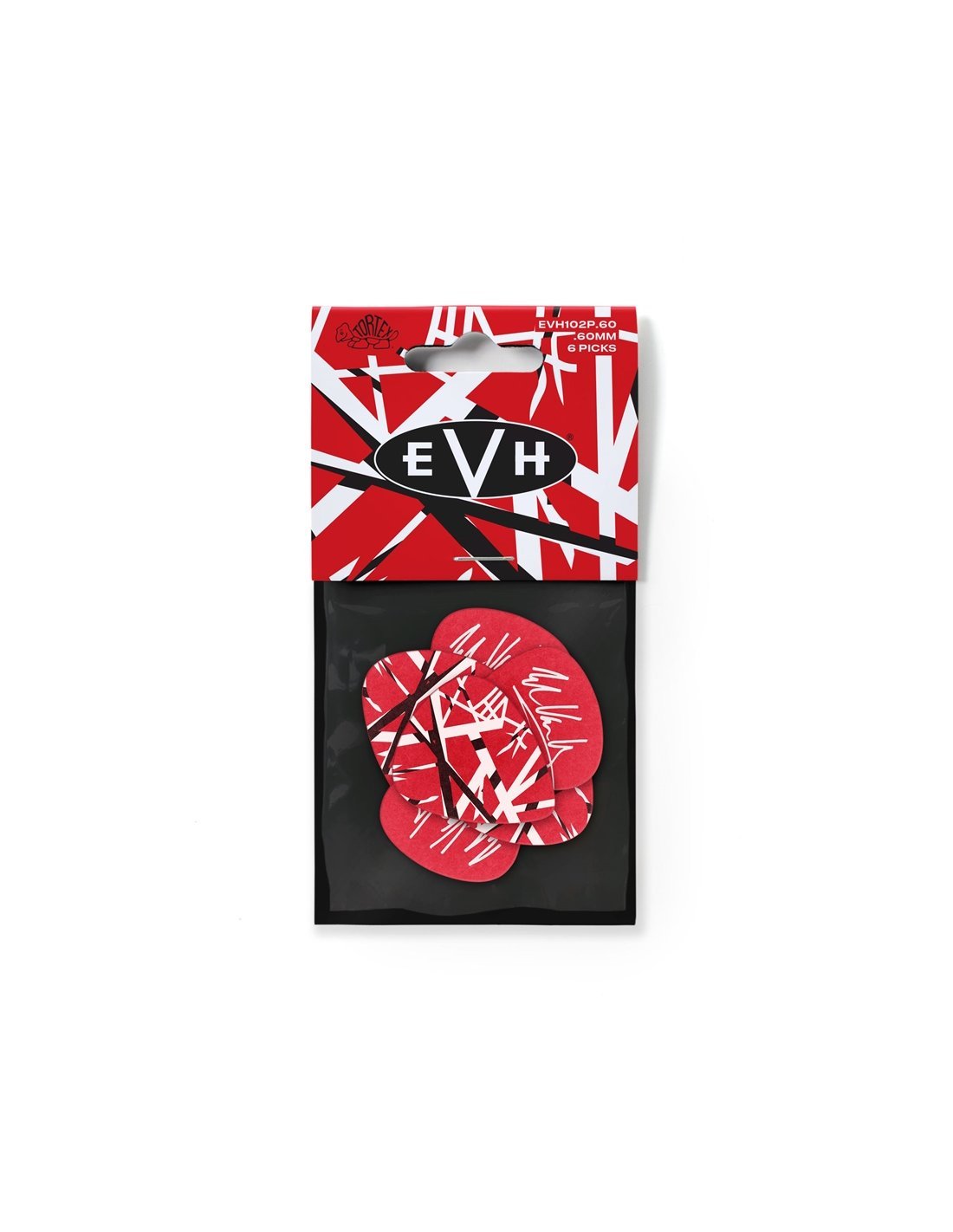 EVH102P060 EVH Tortex Pick .60 mm ist das 6er-Pack der Tortex® Signature-Picks von Eddie Van Halen von Dunlop. Mit einer Dicke von 0,60 mm bieten diese Picks die legendäre Leistung des Tortex-Materials und das Artwork der legendären Gitarre Frankenstein von Eddie.