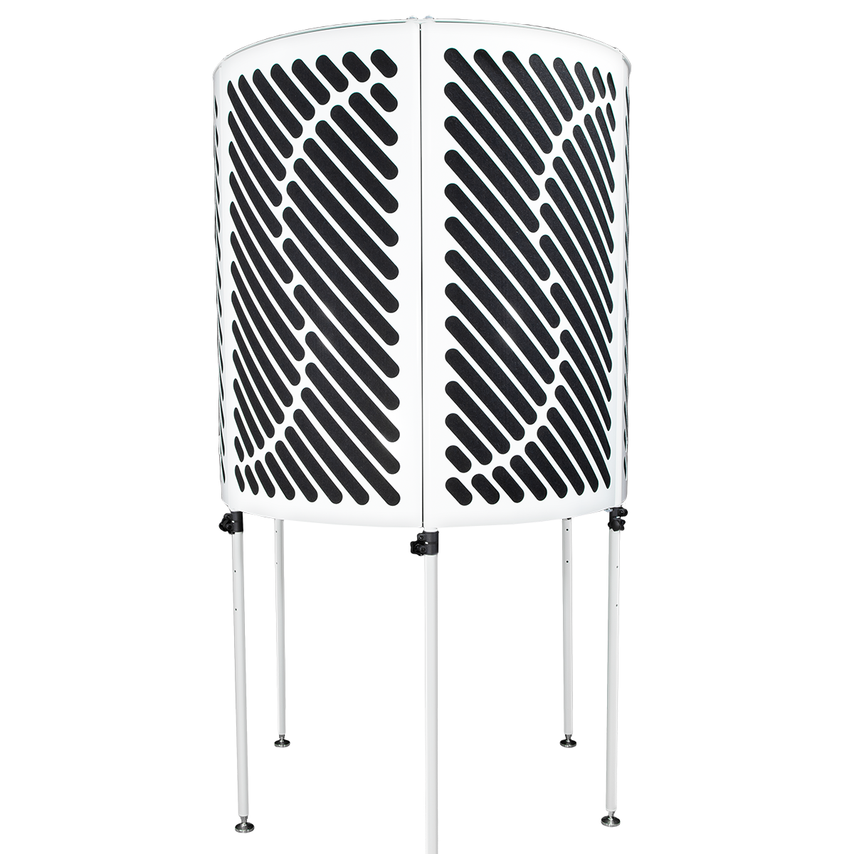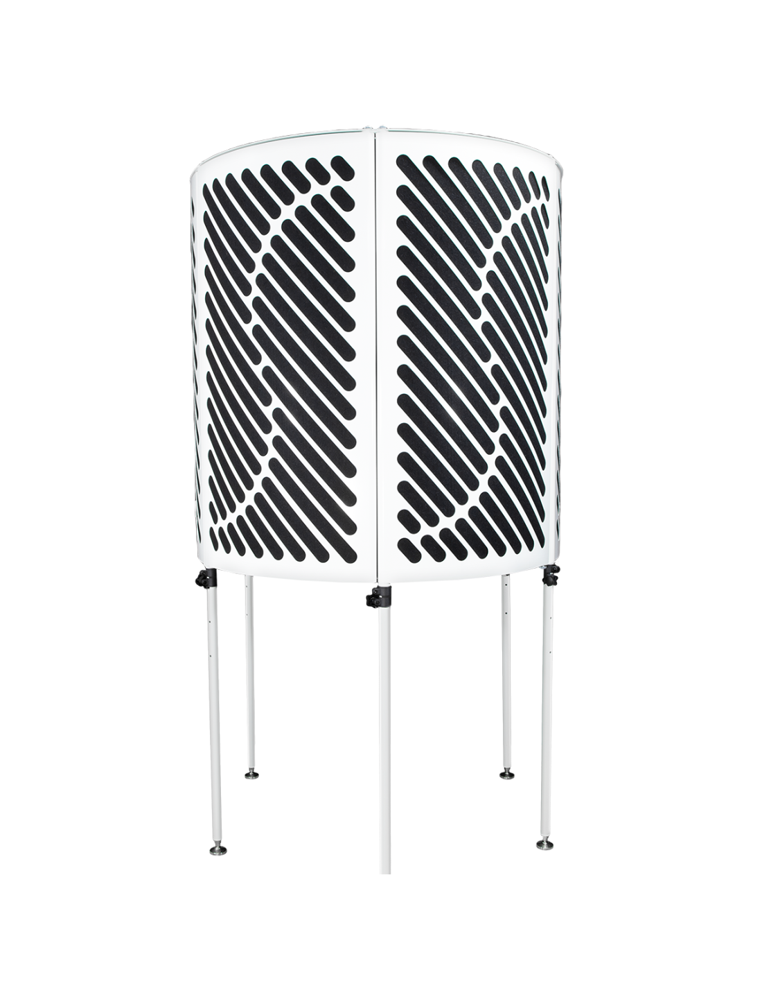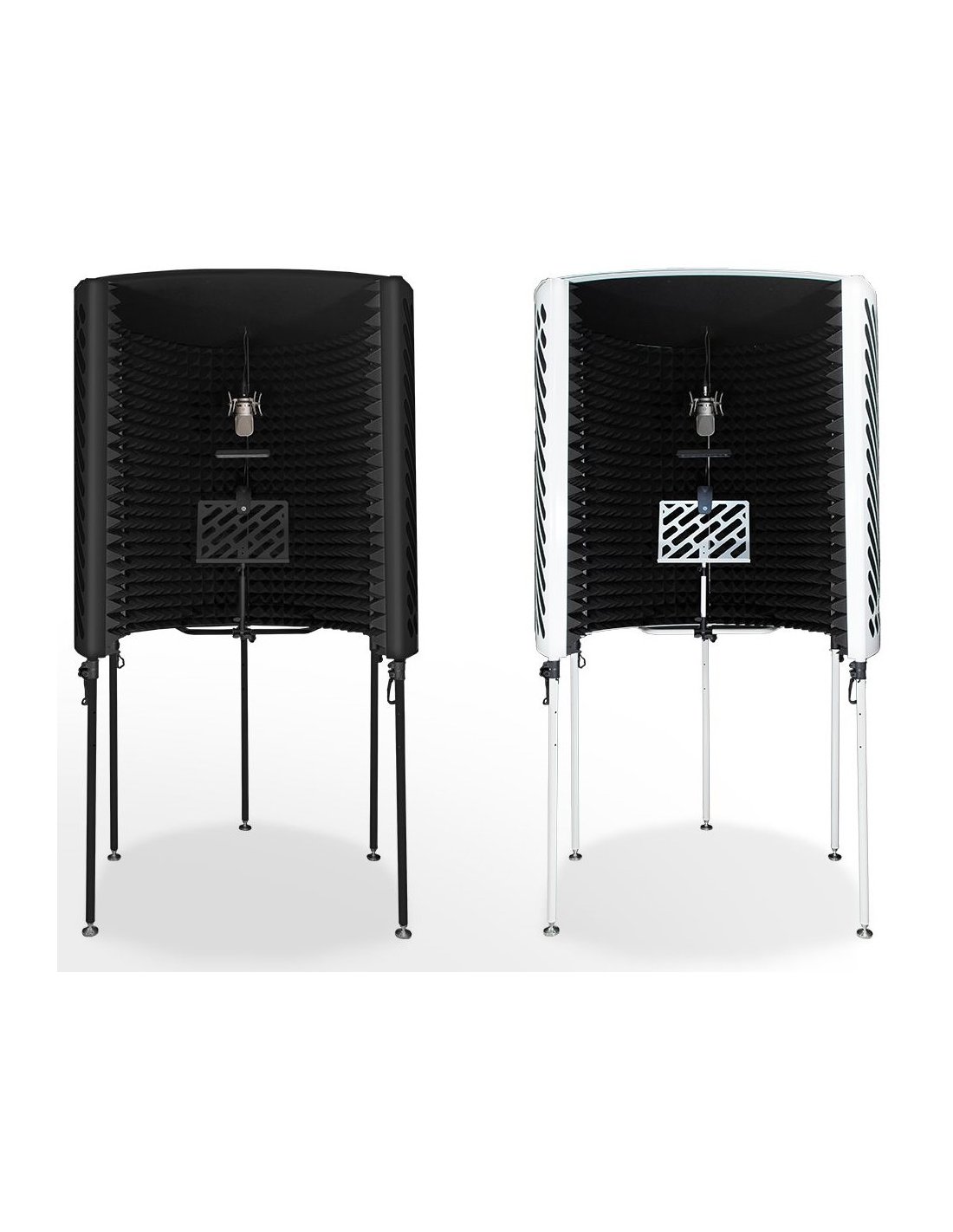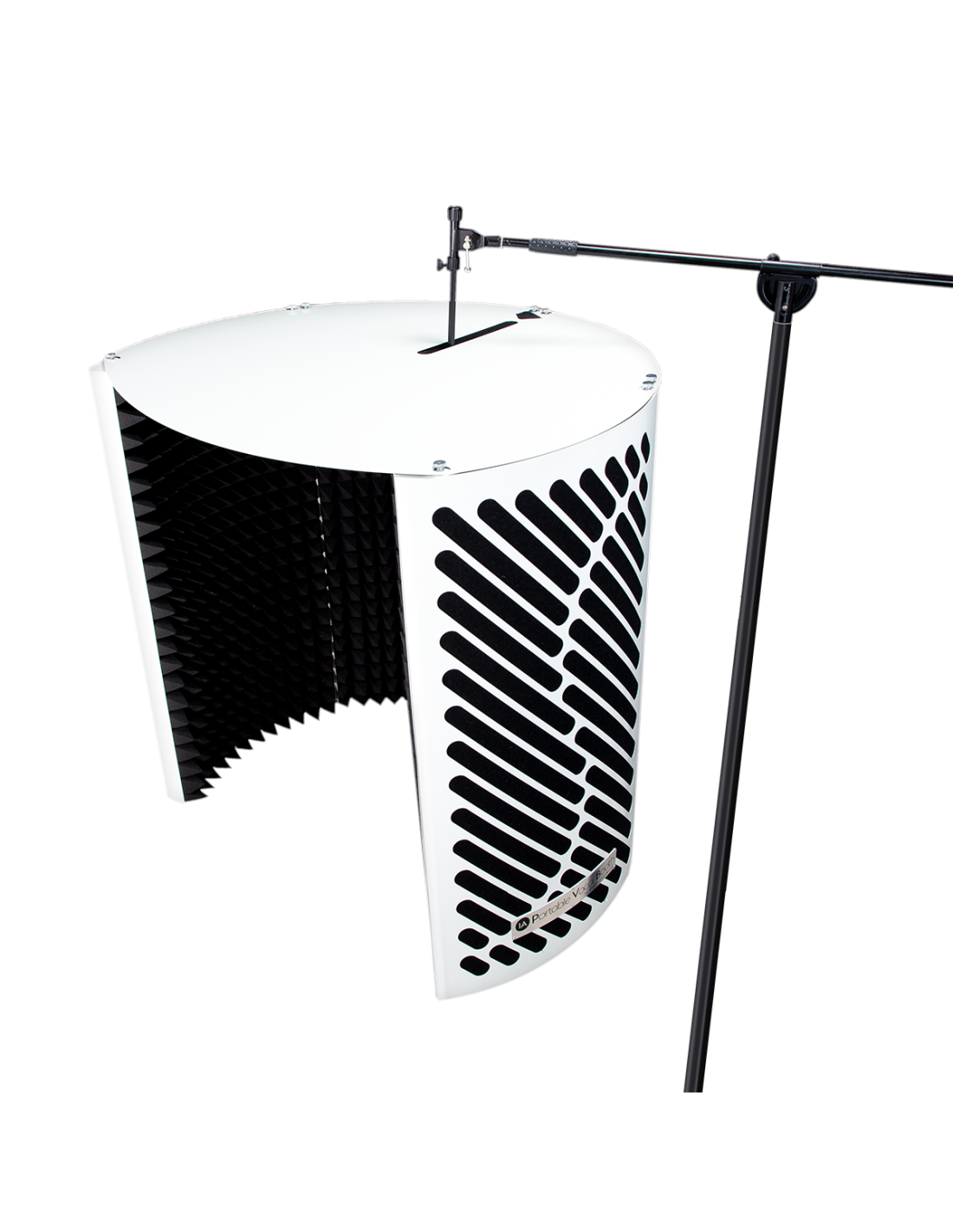 IMPERATIVE AUDIO PORTABLE VOCAL BOOTH WEISS. Offene akustische Kabine mit teleskopischen und höhenverstellbaren Füßen bis zu 210 cm, Mikrofonhalter, vorinstalliertes Notenpult und LED-Lampe, Innenauskleidung aus schallabsorbierendem Schaum. Inklusive Tragetasche.