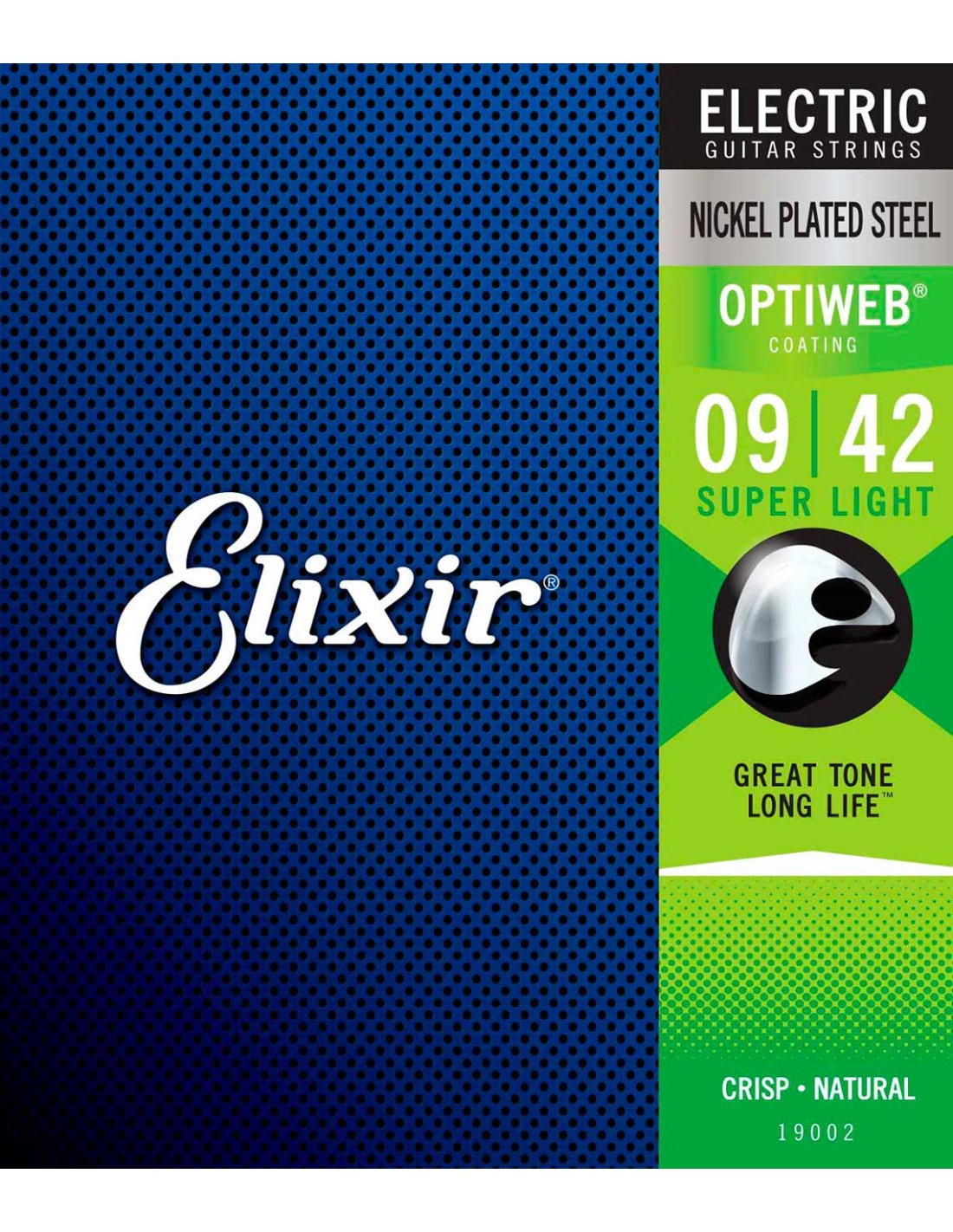 ELIXIR 19002 SUPER LIGHT 9-42 ELEKTRISCH. Saitenwechsel für E-Gitarre aus vernickeltem Stahl mit Optiweb-Beschichtung. Stärken 009, 011, 016, 024, 032, 042