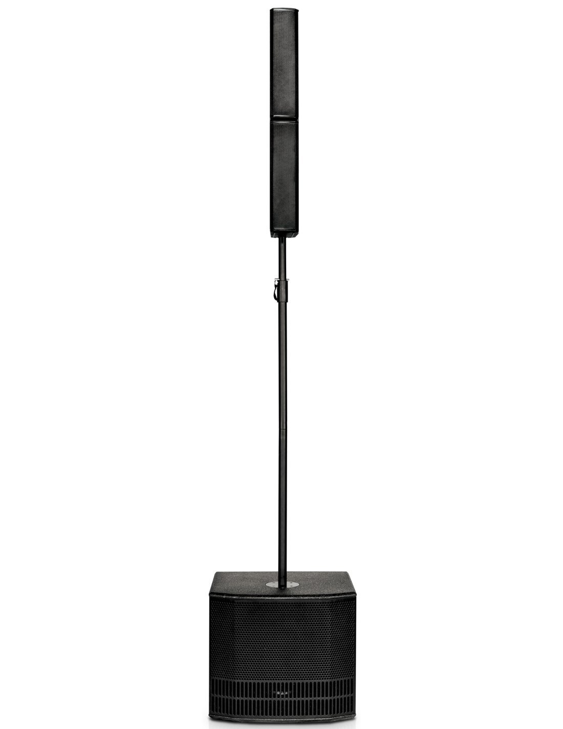 DB TECHNOLOGIES ES802 ist ein aktives PA-Säulensystem mit 1200W (Spitze) der Klasse D, mit DSP 24-Bit bei 48kHz. Die Frequenzantwort reicht von 37Hz bis 15kHz und kann einen maximalen SPL von 124dB erzeugen. Der Subwoofer beherbergt einen 12"-Woofer, während die 8 HF-MF-Treiber mit 3" aus Neodym mechanisch ausgerichtet sind, um die vertikale Abdeckung zu maximieren. Die DSP-Technologie umfasst den Dual Active Limiter und bietet 8 Presets, die je nach Einsatzbedingungen verwendet werden können (Flat, Bass Boost, Bass Reduction, Playback, Club, Vocal, Monitor und Antifeedback). Der Crossover ist auf 206Hz eingestellt. DB TECHNOLOGIES ES802 bietet 1 symmetrischen/unsymmetrischen Mic/Line COMBO-Eingang (XLR/Jack) + 1 Stereo RCA-Eingang + 1 symmetrischen XLR-Ausgang. Das Gehäuse des Subwoofers besteht aus Birkenmultiplex und wiegt 16,4 kg; das Top ist aus Polypropylen gefertigt und wiegt 1,9 kg.