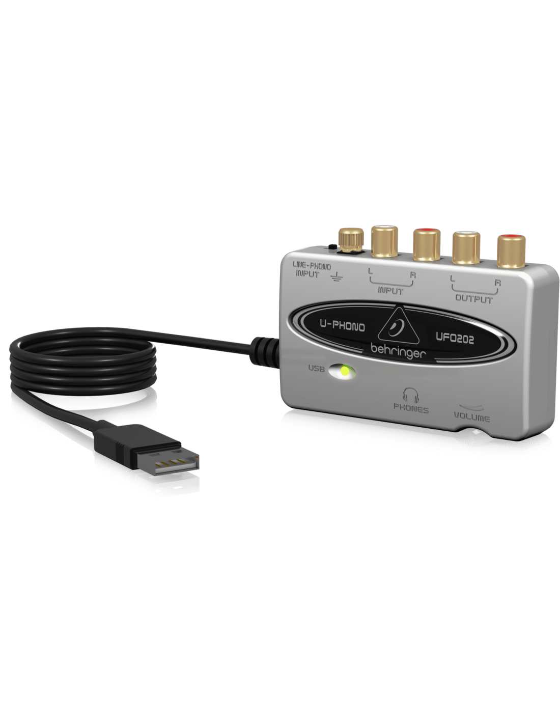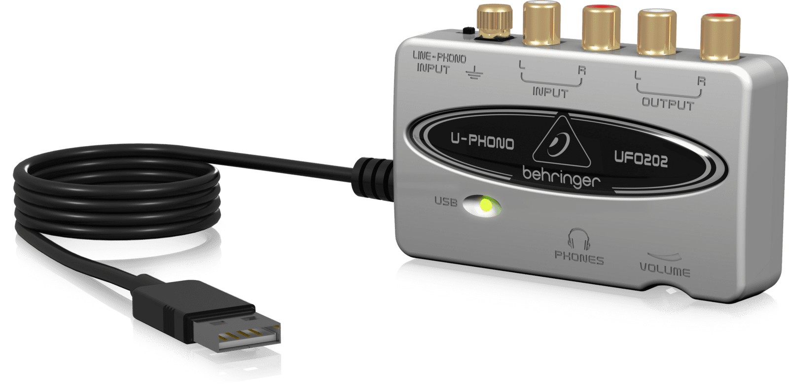 Das UFO202 ist ein USB-Audio-Interface von Behringer, um Plattenspieler, Kassettenplayer oder andere Audiogeräte mit einem Computer zu verbinden. Es verfügt über einen integrierten Phono-Vorverstärker, Stereo-RCA-Eingang und -Ausgang, Kopfhörerausgang und die Musikproduktionssoftware energyXT2.5 Compact ist im Lieferumfang enthalten.