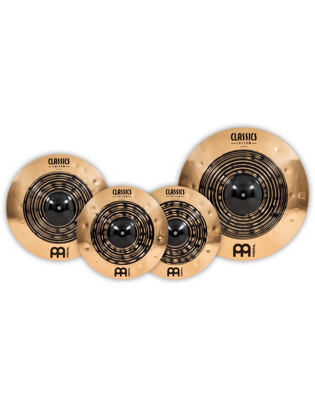 Classics Custom Dual Set Platos 141620. Die neuen Classics Custom Dual bieten eine spektakuläre Ästhetik, aber ihre klanglichen Eigenschaften sind noch beeindruckender. Der dunkle Grundsound, die Bearbeitung und die glänzende Außenseite verleihen große Vielseitigkeit und eine hervorragende Ansprache auf den Stock. Der dunkle Mittelteil verleiht dem Becken einen explosiven und kraftvollen Charakter. Die Becken werden in Deutschland aus B12-Bronzelegierung hergestellt. Wir halten es außerdem für wichtig zu betonen, dass sie zu 100 % mit erneuerbarer Energie produziert werden, die wir in unserem Werk erzeugen.