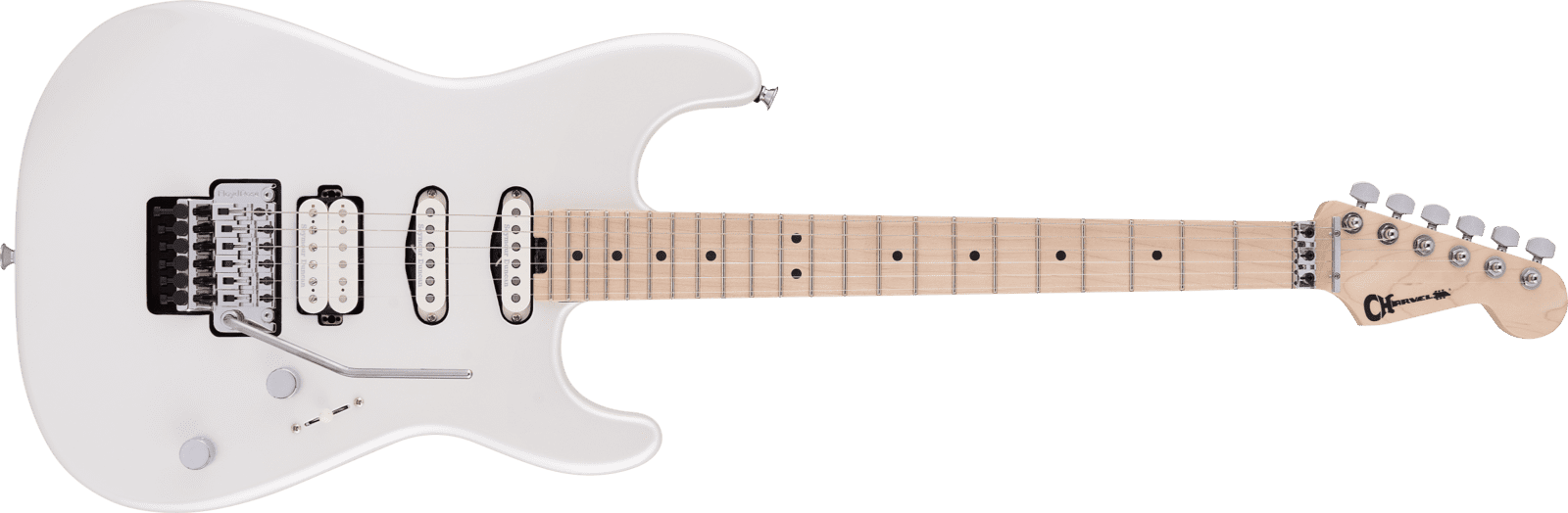 Chitarra Elettrica Charvel Pro Mod SD3 HSS FR colore Platinum Pearl. La Charvel Pro Mod SD3 HSS FR è una chitarra elettrica a 6 corde. Manico in Acero, 22 tasti Jumbo, con raggio Compound da 12" a 16". Corpo tipo San Dimas Style 1 in Ontano. 3 pickup Seymour Duncan: JB TB-4 al ponte e due SSL-6 al centro e al manico. Controlli di Volume e Tono, selettore a 5 posizioni. Hardware cromato con ponte Floyd Rose serie 1000.