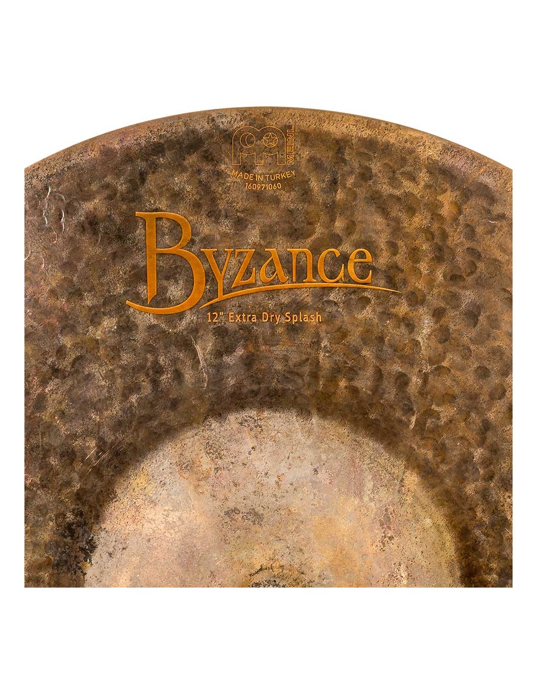 'Splash 10'', Serie Byzance Extra Dry. Die Becken der Serie Byzance Extra Dry werden in unserer Fabrik in der Türkei von Spezialisten handwerklich hergestellt und respektieren die Tradition im gesamten Prozess. Alle Becken sind aus B20-Bronzelegierungen gefertigt. Verschiedene Techniken sind im Prozess beteiligt, sowohl das Hämmern als auch das Drehen. Die nicht gedrehte Oberflächenbearbeitung und die gehämmerte Oberfläche mit größerem Durchmesser zusammen mit dem vollständig gedrehten Boden des Beckens machen die Serie einzigartig. Mit einem explosiven Klang, etwas Trash und wenig Sustain. Diese Becken haben ein völlig einzigartiges Klanguniversum geschaffen.