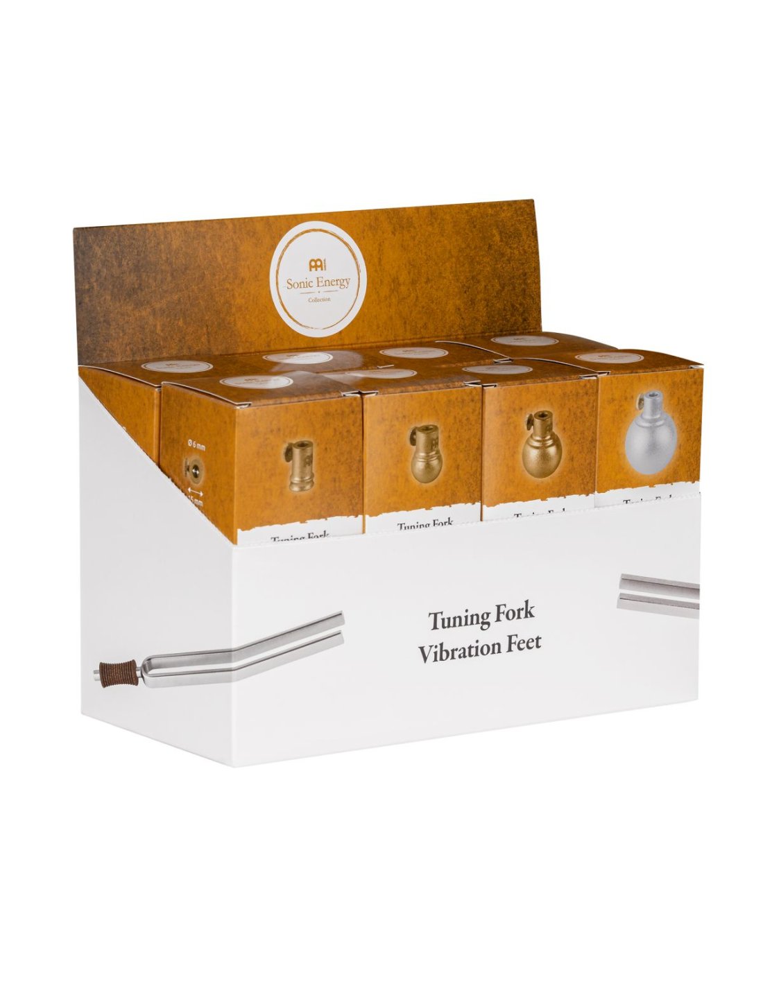 'Display, das 4 ''Vibrationsfüße'' enthält: - VF-RL Vibrationsfuß, Rund, Groß, 98g, verchromt. - VF-RM Vibrationsfüßchen, Rund, Mittel, 129g, Gold. - VF-RS Vibrationsfüßchen, Rund, Klein, 46g, Gold. - VF-FS Vibrationsfüßchen, Flach, Klein, 25g, Gold. SE2024'embalajhe schlechter ZustandArtikel neu verpackt