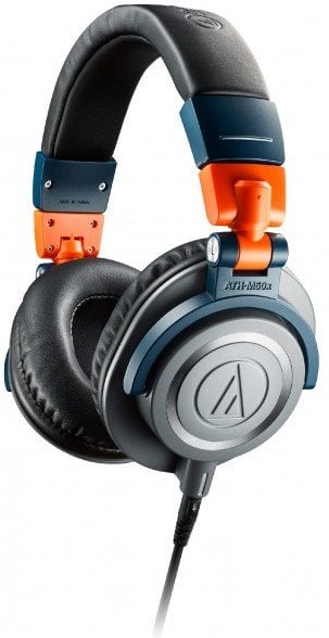 AUDIO TECHNICA ATH-M50XLAB ist ein professionelles Over-Ear-Studio-Kopfhörer, limitierte LAB-Ausgabe in Navy/Orange, mit faltbaren Ohrmuscheln, 45mm Neodym-Treibern und einer mit Kupfer beschichteten CCAW-Spule, Frequenzgang von 15Hz - 28kHz, abnehmbares Kabel mit Ausgang an der rechten Ohrmuschel. Im Lieferumfang enthalten sind ein 1,2m-3m Spiralkabel, ein 3m gerades Stereo-Kabel mit vergoldetem 1/8" (3,5mm) Stecker, eine weiche Tasche und ein 6,3mm Klinkenadapter.