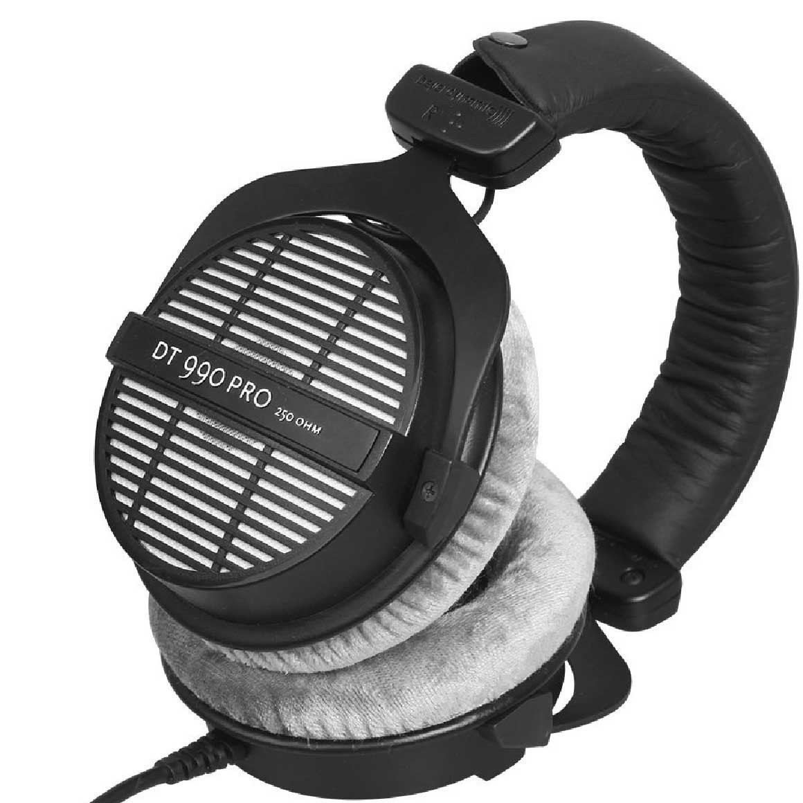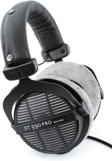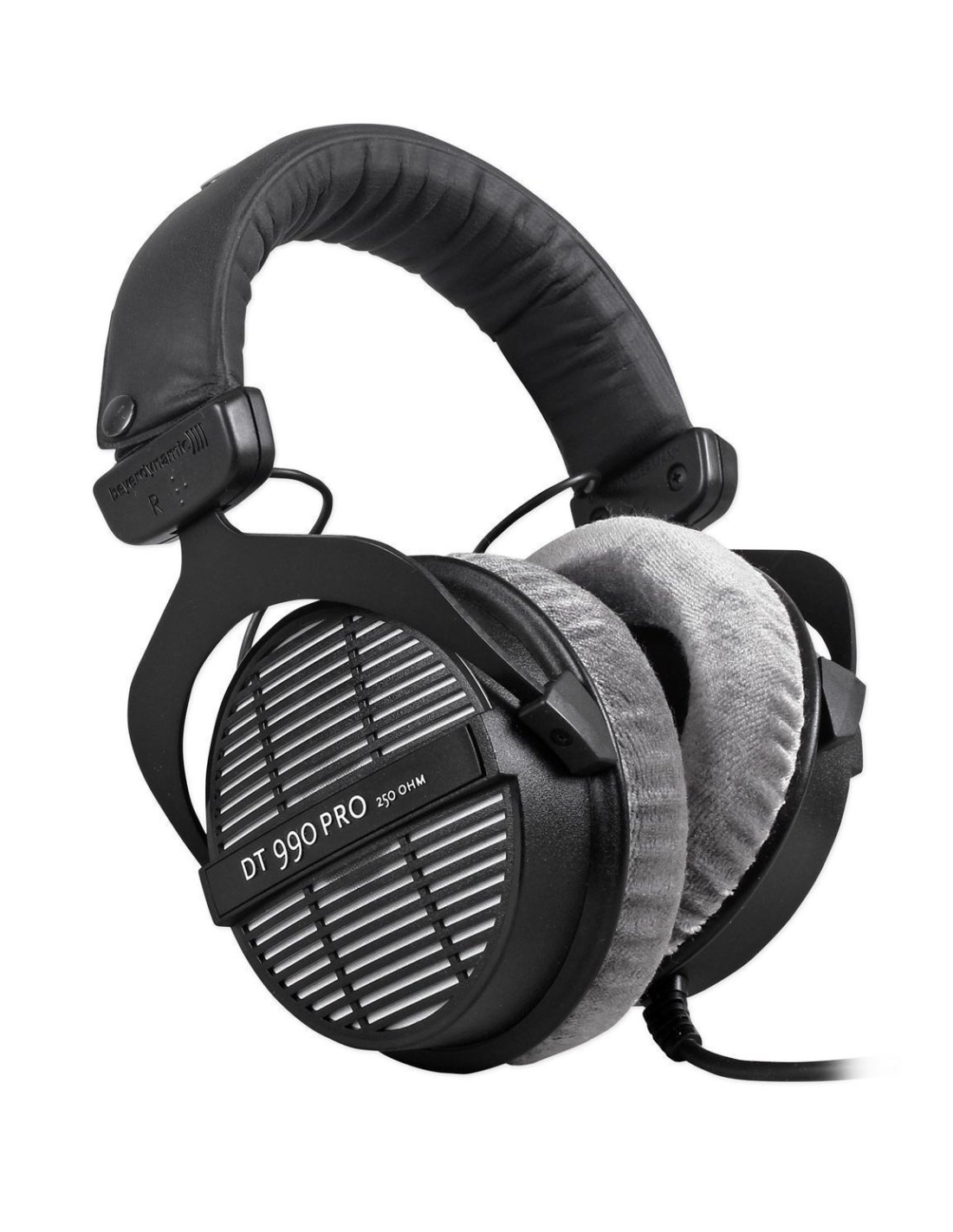 BEYERDYNAMIC DT990 PRO 250 OHM ist ein offenes Over-ear-Studio-Monitorheadset mit dynamischem Wandler, Frequenzgang von 5Hz - 35kHz, 250 Ohm Nennimpedanz, robustem Design mit Stahlkopfbügel und weicher Polsterung am Bügel und an den Ohrmuscheln. Enthält einen vergoldeten 6,3mm Klinkenadapter, ein 3m Kabel und ein Spiralkabel.