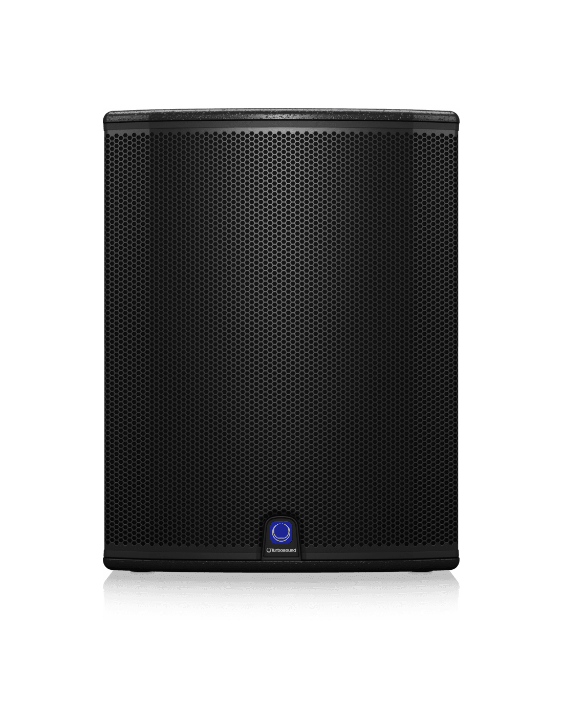 TURBOSOUND iQ18B. Aktiver Subwoofer mit 3000W Leistung auf einem Klar Teknik Verstärker der Klasse D, 18" Woofer mit 4" Dual-Suspension-Spule und integriertem DSP Klark Teknik Digital Signal Processor zur elektronischen Verwaltung von dynamischem EQ, Limiter und Lautsprechermodellierungs-Presets. Verfügt über ein LCD-Display zur Navigation und Verwaltung, 1 Encoder zur Steuerung des Gains beider Kanäle, multifunktionalen Drehencoder zur Verwaltung der DSP-Funktionen, 2 kombinierte XLR/TRS Eingänge, 2 symmetrische XLR-Ausgänge, Signalstatus-LEDs auf beiden Kanälen, Übertragung von mehrkanaligen Audiosignalen über Ultranet-Technologie auf CAT5-Kabel, integrierter USB-Anschluss zur Fernsteuerung des DSP über PC, vormontierte Räder für einfachen Transport.