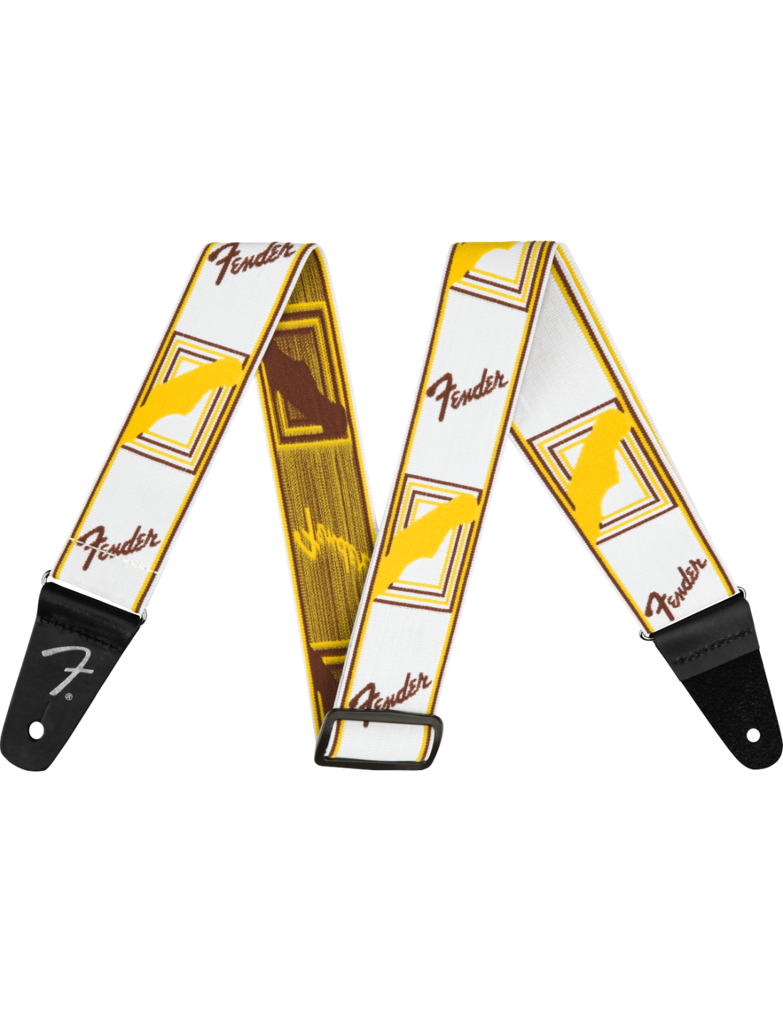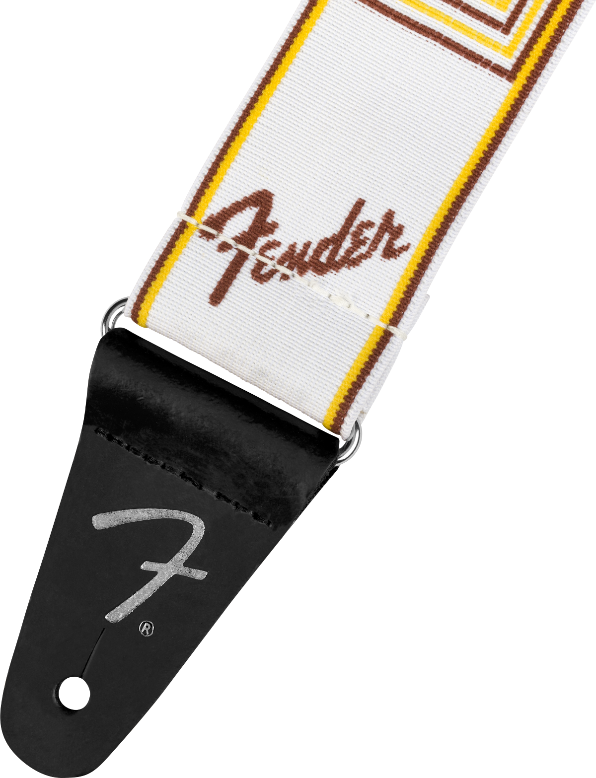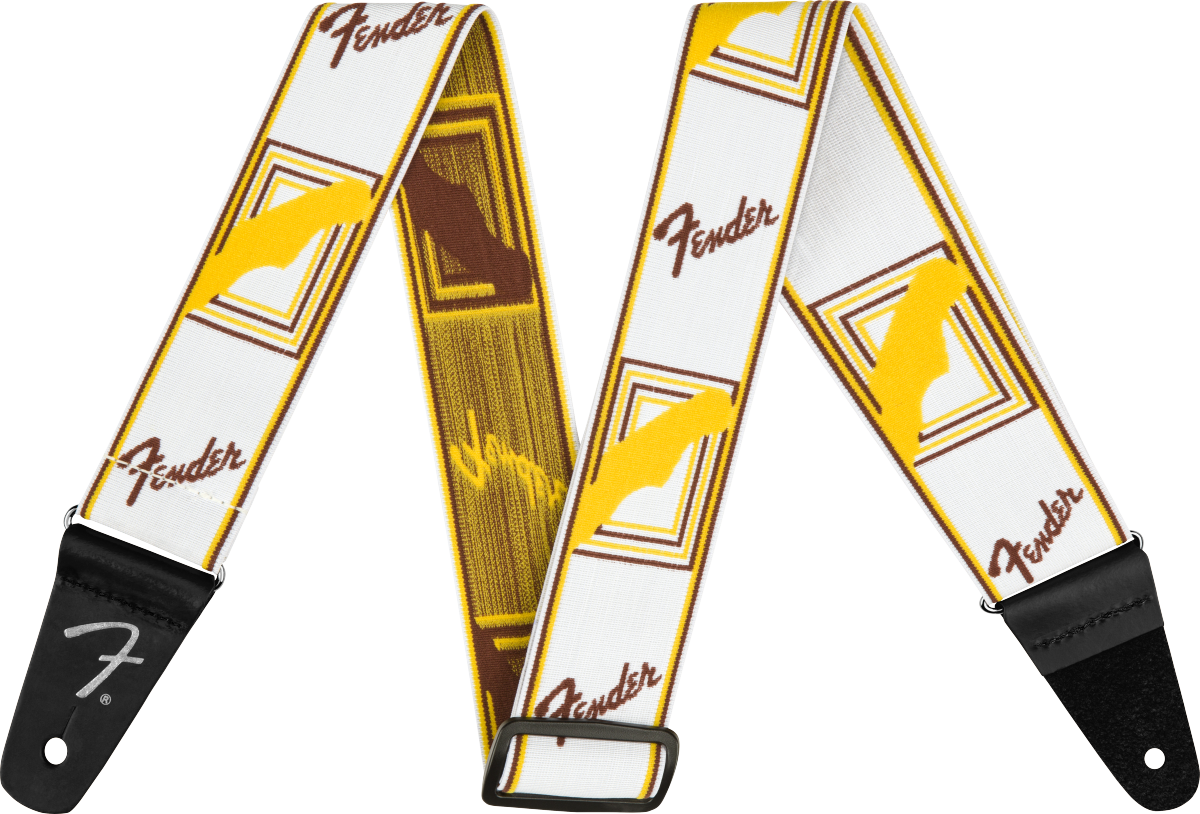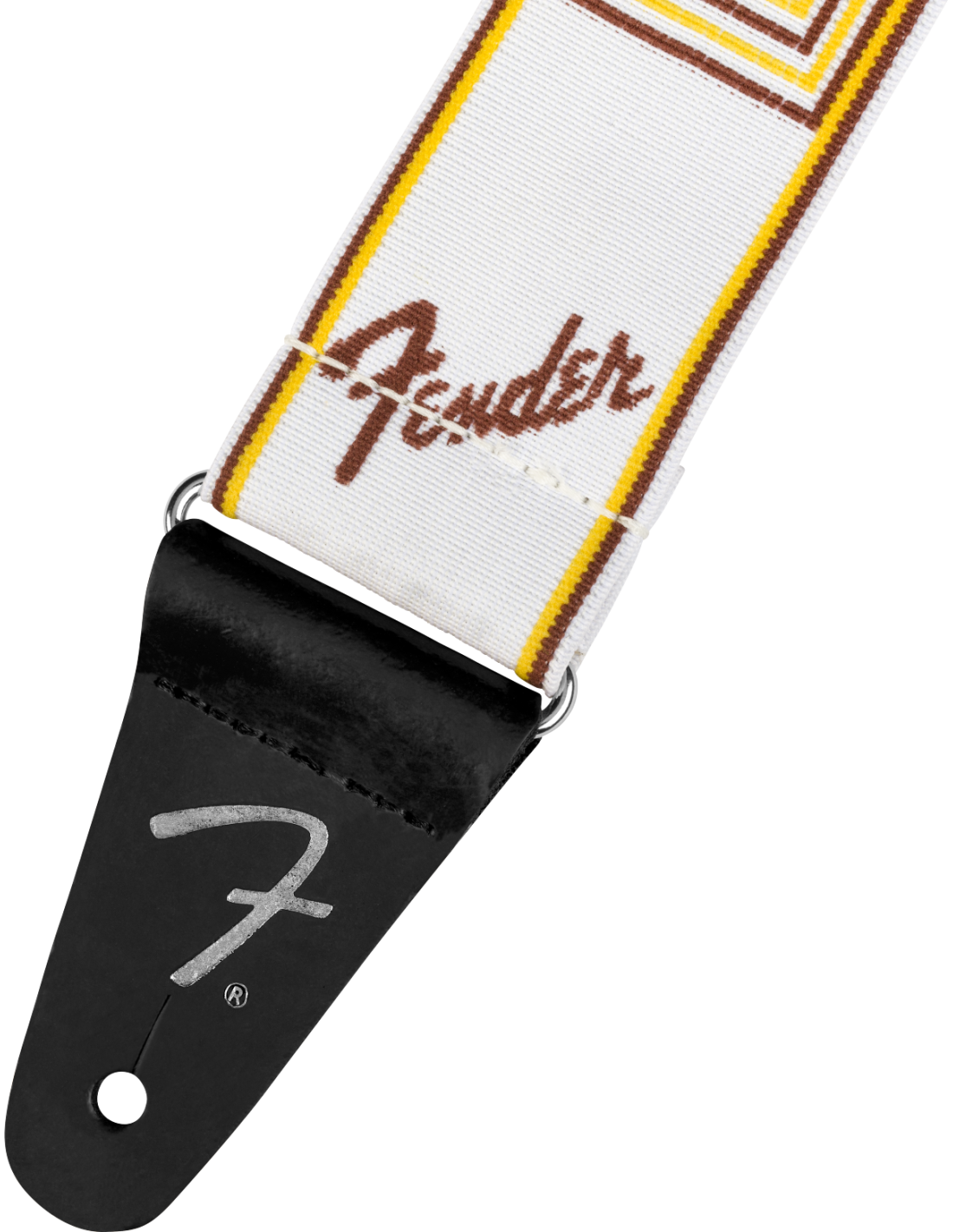 FENDER STRAP WEIGHLESS MONO W/B/Y ist ein elastischer Gurt aus Polyester mit Spandex-Faser aus der Fender WeighLess-Serie, mit einer verstellbaren Länge von 111 bis 133 cm, einer Breite von 5 cm und konischen Lederenden mit dem Logo "F"
