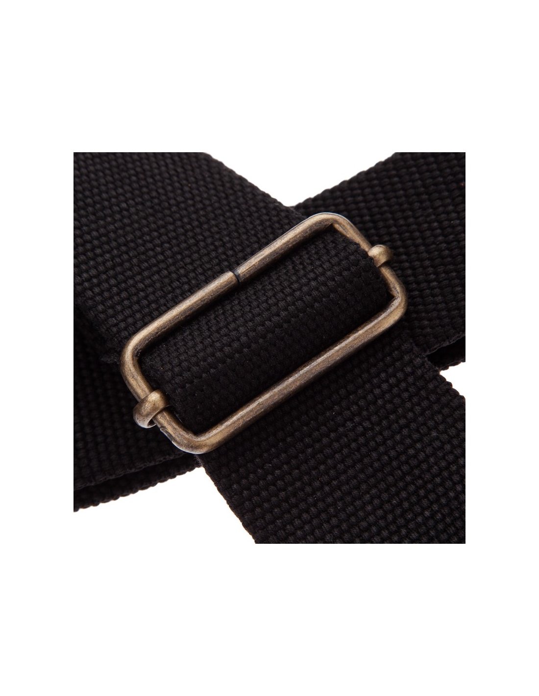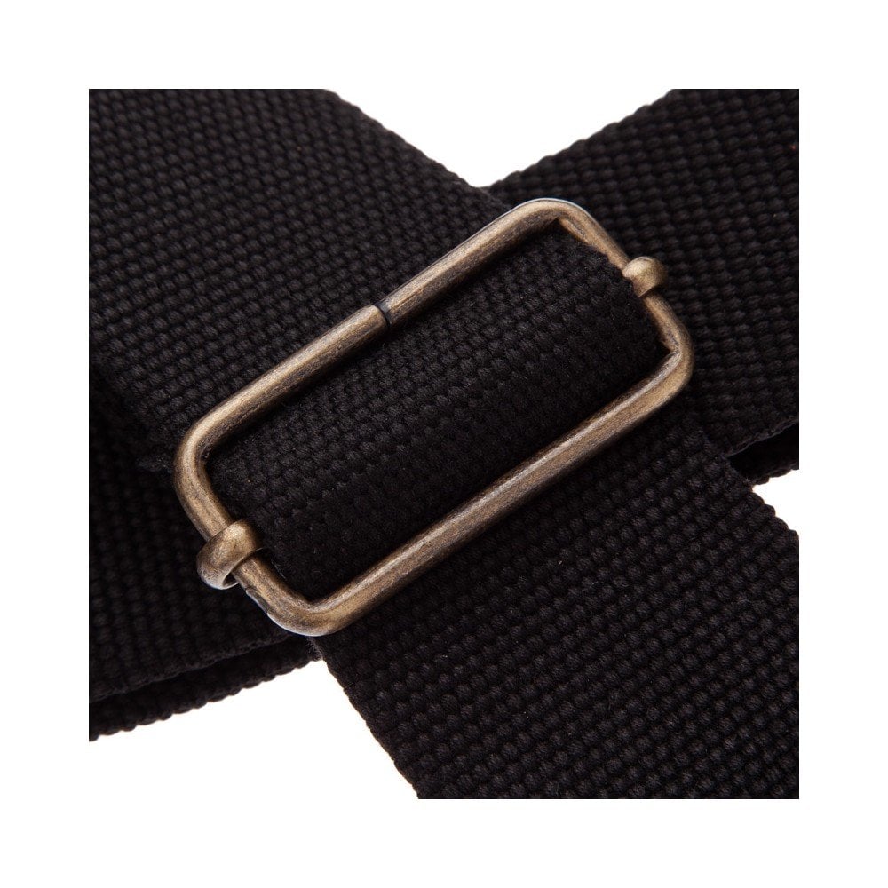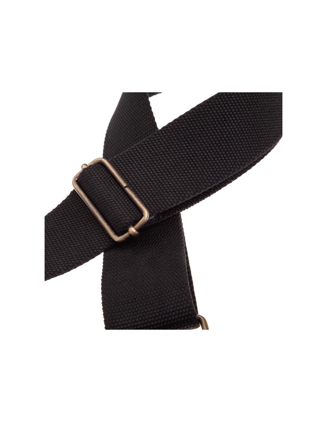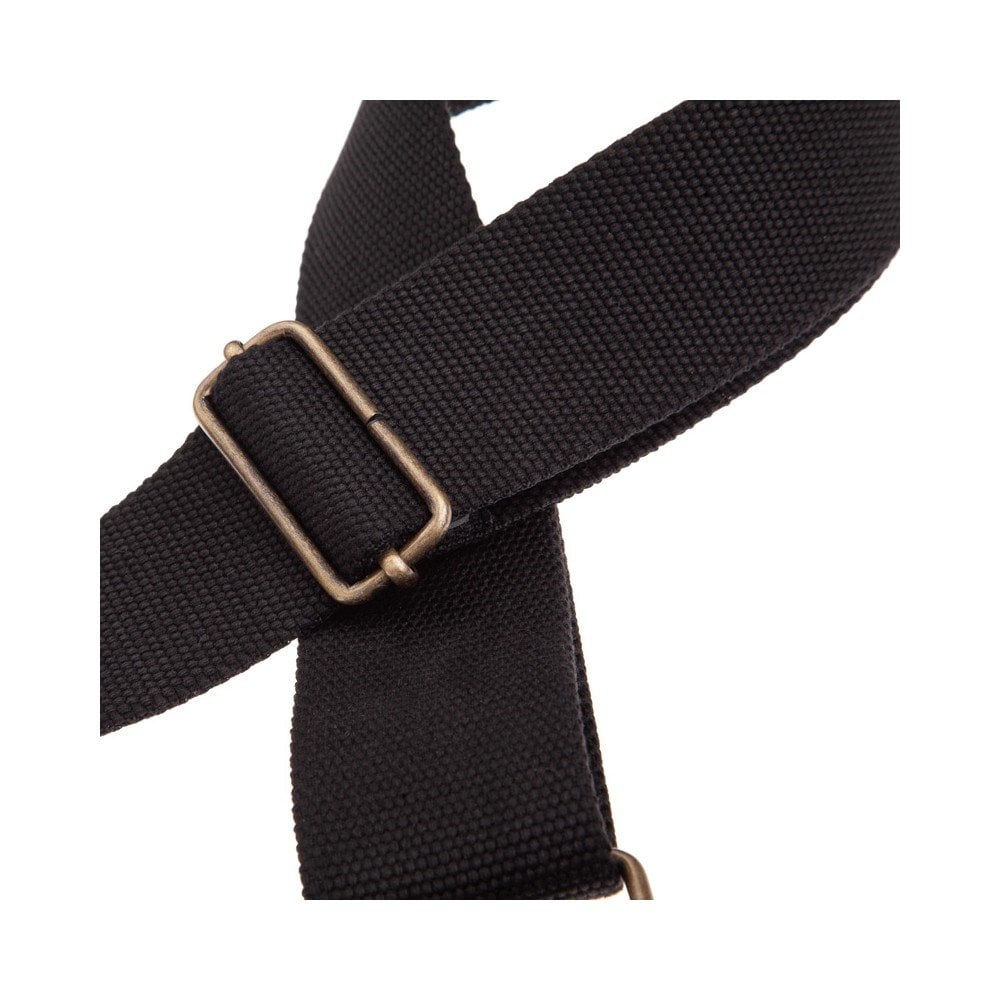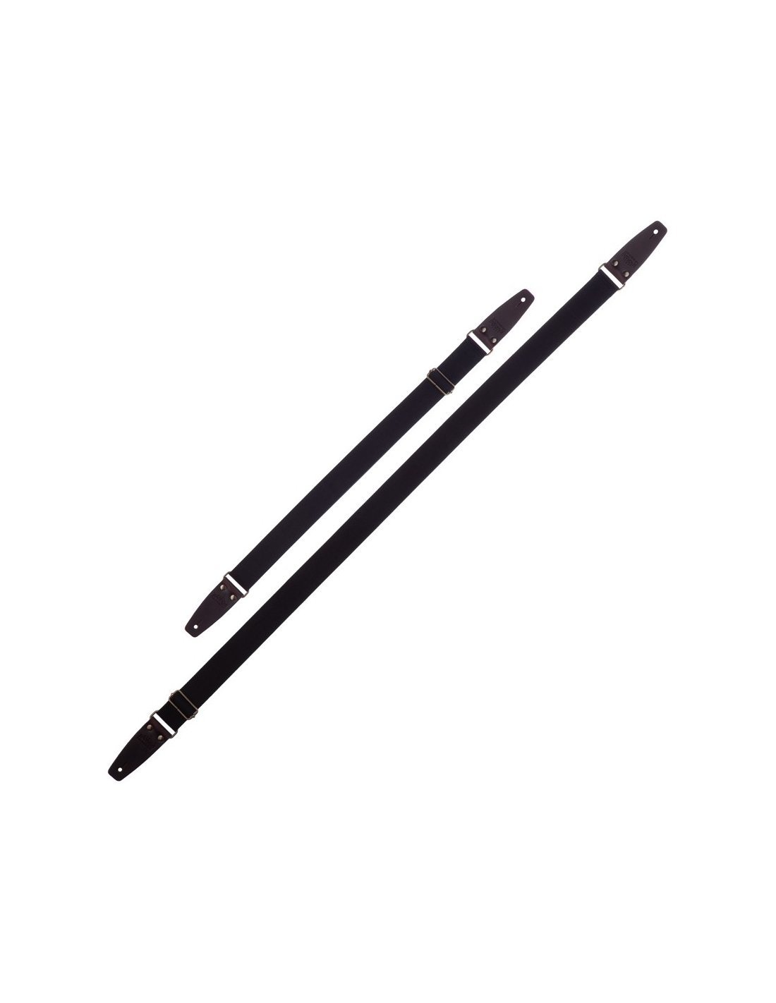 MAGRABO' STRIPE SC ENTRY NERO 5CM TERMINALI MARRONE SCURO FIBBIA OTTONE ANTICO. Tracolla per chitarra e basso elettrico realizzata in nastro di vero cotone di alta qualità 100% Made in Italy, terminali Vera pelle di alta qualità color nero, senza cuciture, fibbia di ottone antico, larghezza 5 cm e lunghezza regolabile da 88 a 150 cm.