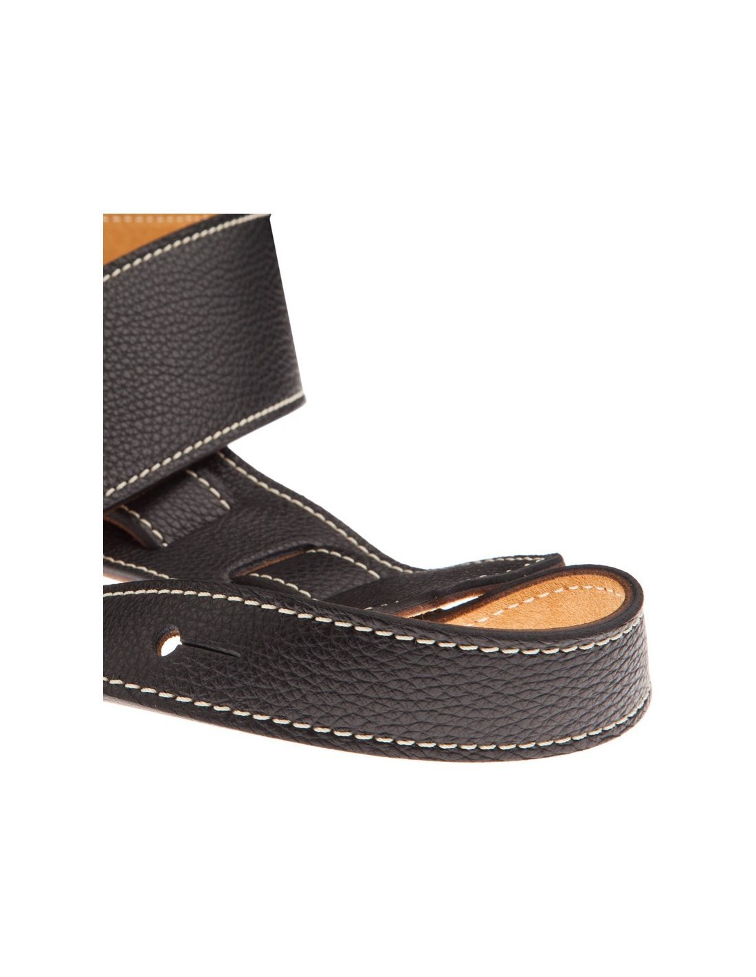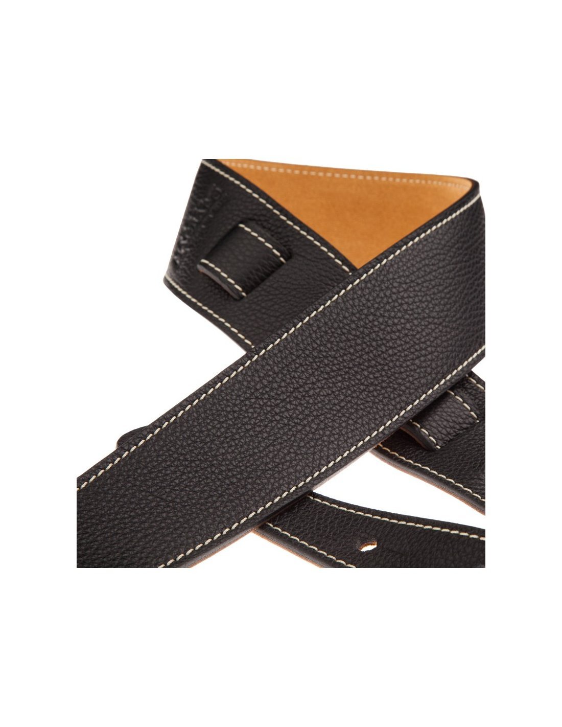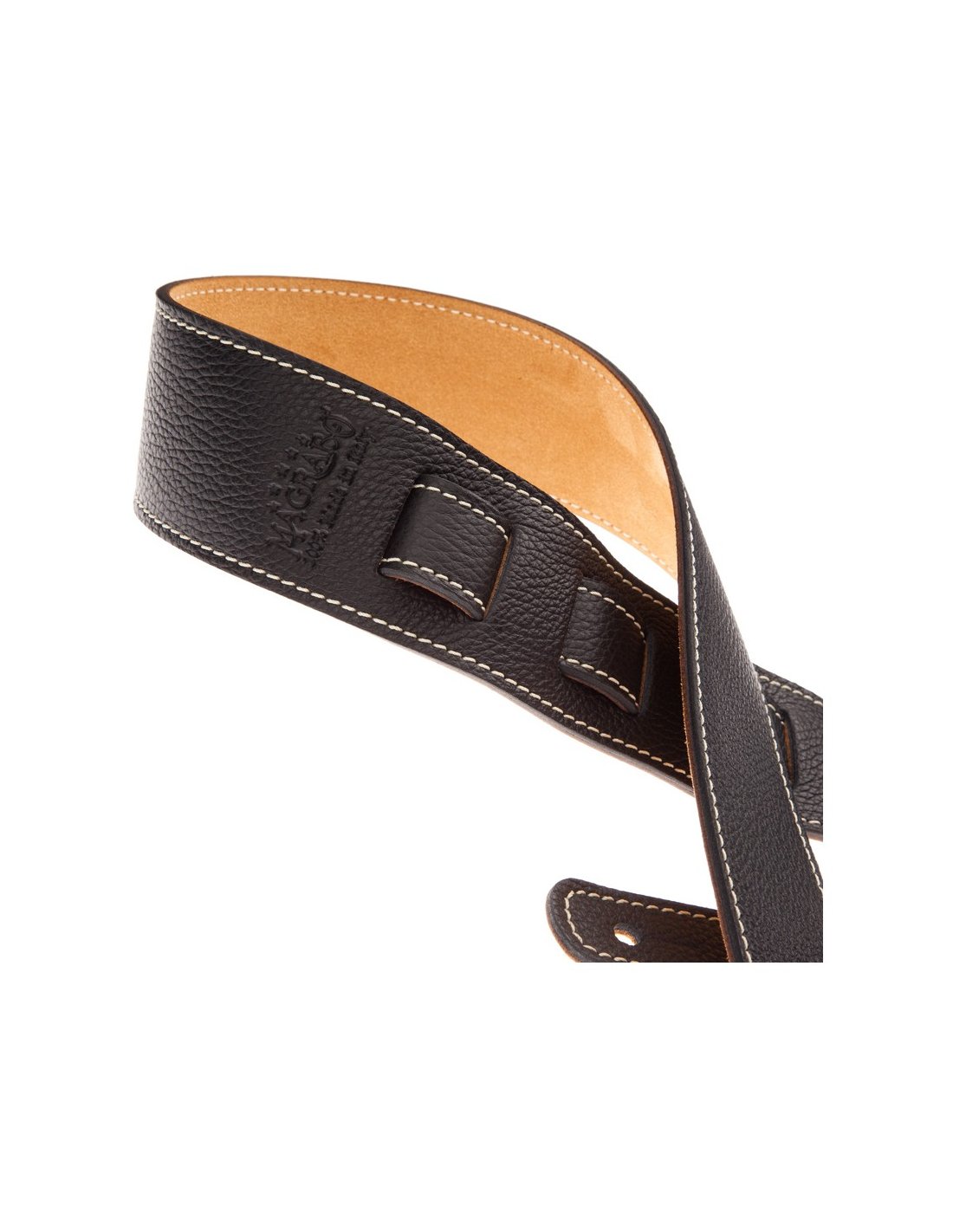 MAGRABO' HOLES HS COLORS NERO 6CM. Tracolla per chitarra e basso elettrico realizzata in vera pelle di alta qualità 100% Made in Italy, cuciture in cotone ecru, rivestimento interno scamosciato, larghezza 6cm e lunghezza regolabile da 105 a 142 cm.