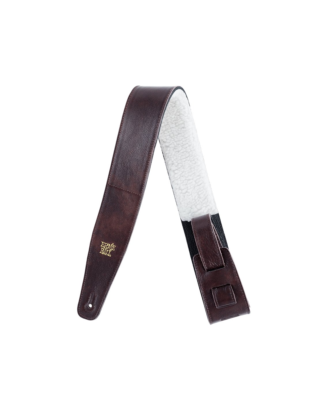 Ernie Ball Tracolla Regolabile in Pelle Italiana, Larga 5 cm Imbottita in Pelliccia - Marrone