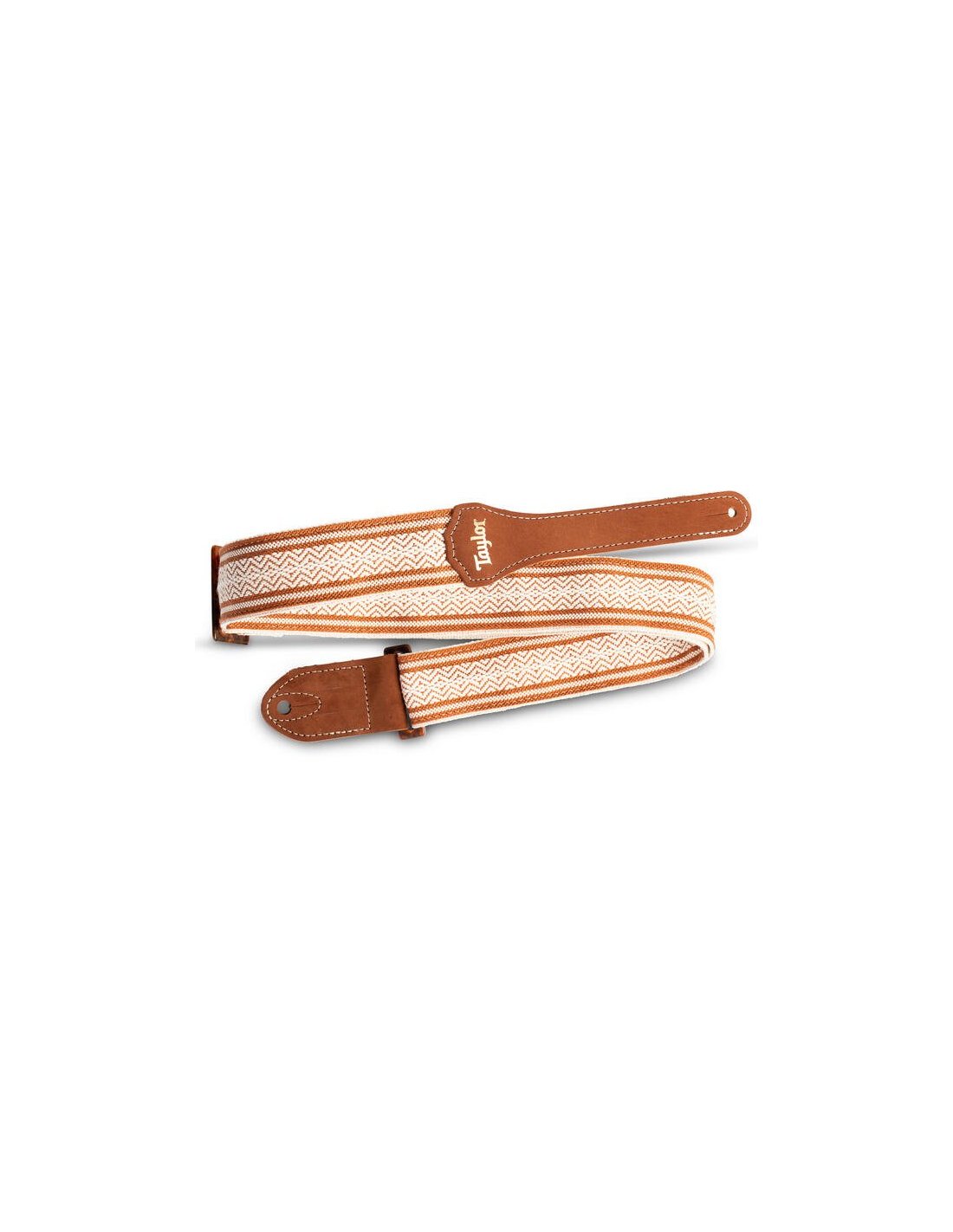 Der Taylor Strap Academy White/Brown Cotton 2" ist ein Gitarrengurt der Academy-Serie, der aus hochwertiger Baumwolle gefertigt ist. Er verfügt über ein Jacquard-Muster mit echten Wildlederlaschen und einem erhabenen goldenen Taylor-Logo.