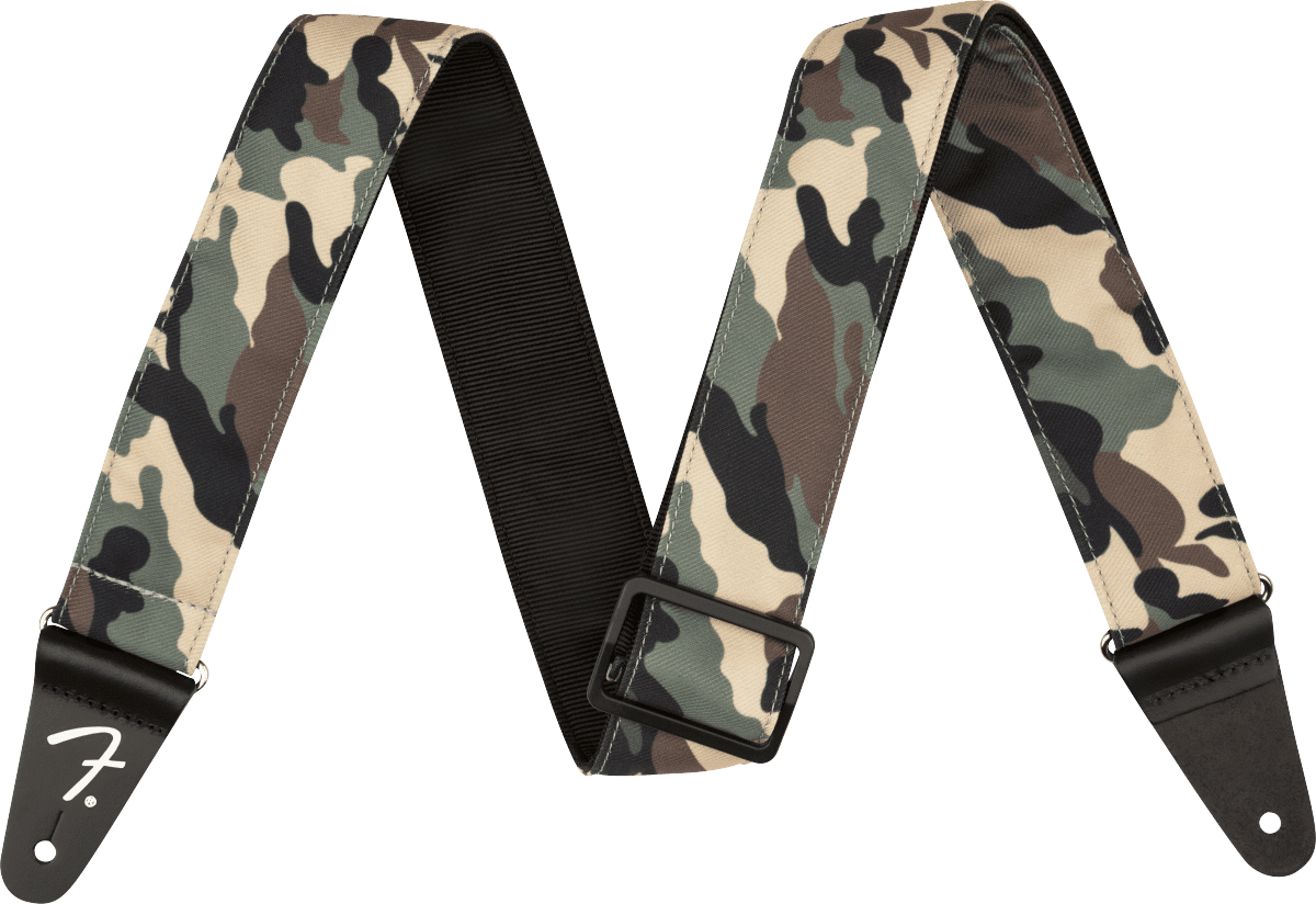 FENDER STRAP 2" CAMO WOODLAND. Tragegurt für Gitarre aus Nylon mit einer Breite von 5 cm (2"), in der Länge von 86 bis 150 cm verstellbar.