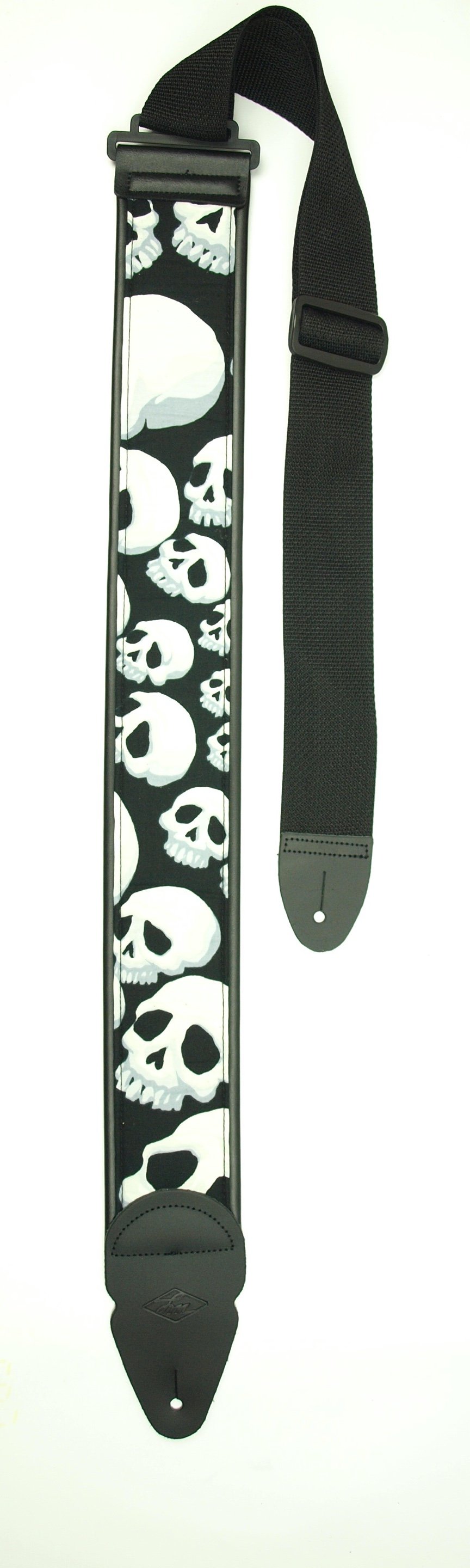 Gitarre Schultergurt 3” aus bedrucktem Stoff, Schaumstoffpolsterung, Lederenden Gitarre Schultergurt 3” aus bedrucktem Stoff, Schaumstoffpolsterung, LederendenHAUPTMERKMALEBreite: 3”Material: Bedruckter Stoff, Schaumstoffpolsterung, LederendenMuster: SK Skulls / Crossbones
