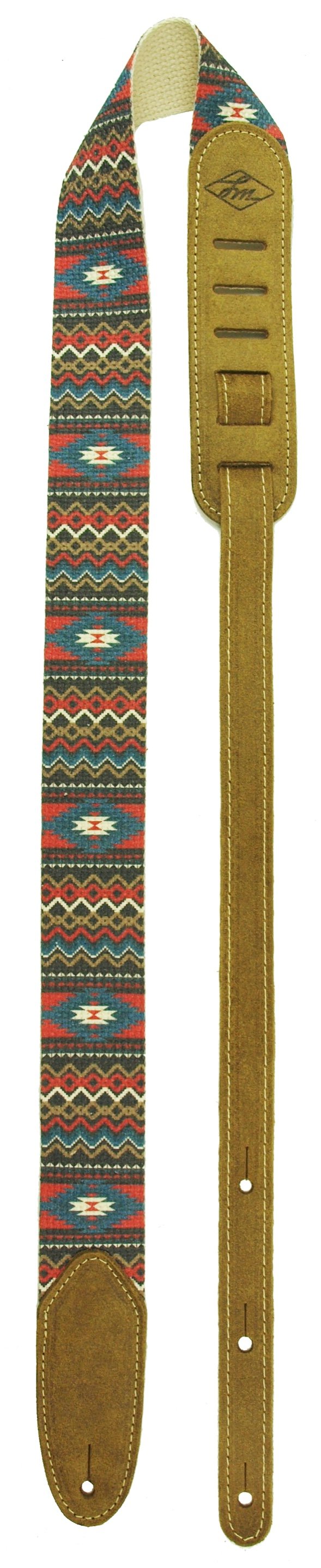 Gitarrengurt 2” aus Baumwolle mit gealterten Wildleder-Enden Gitarrengurt aus Baumwolle mit gealterten Wildleder-EndenDesign im Southwestern-StilHAUPTMERKMALELänge: Verstellbar von 44” bis 58”Breite: 2”Material: Bedruckte Baumwolle, gealterte Wildleder-EndenMuster: SW14
